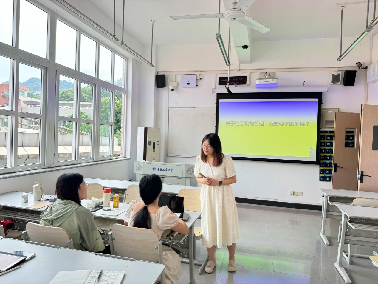 为贯彻学院课堂教学改革指导思想,促进“课堂教学和实践教学”有机结合,提高人才培养质量,2024年05月15日上午,太阳成tyc234cc《社会组织理论与实务》课程特邀重庆市合川区三好服务中心主任何春燕开展以“社工机构管理与项目管理”为主题的移动课堂。本次移动课堂由授课教师程鹏立教授主持、2023级MSW学生参与。