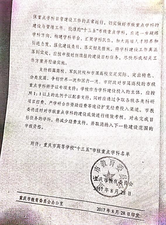 重庆市教育委员会发文公布了重庆市高等学校“十三五”市级重点学科评审结果(渝教研发[2017]7号)。我院申报的法学一级学科成为我校获批的十个重点学科之一。