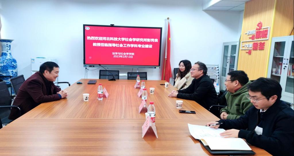 2023年2月12日,河北科技大学彭秀良研究员受邀来我院进行社会工作学科专业建设交流,太阳成tyc234cc副院长侯明喜、社会工作系主任吴永波、社会学系主任罗兆均,以及王茹薪博士参加了本次交流会。