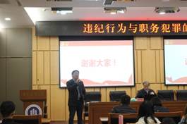2018年10月19日下午,重庆市纪检监察学会吕天庆会长莅临重庆廉政研究中心,讲授关于违纪行为与职务犯罪的区别的论题,法学院2016-2018级研究生以及宪法、行政法、刑法学的有关教师参与了研讨交流,吕天庆会长的个人魅力深深的折服了在场的每位同学。