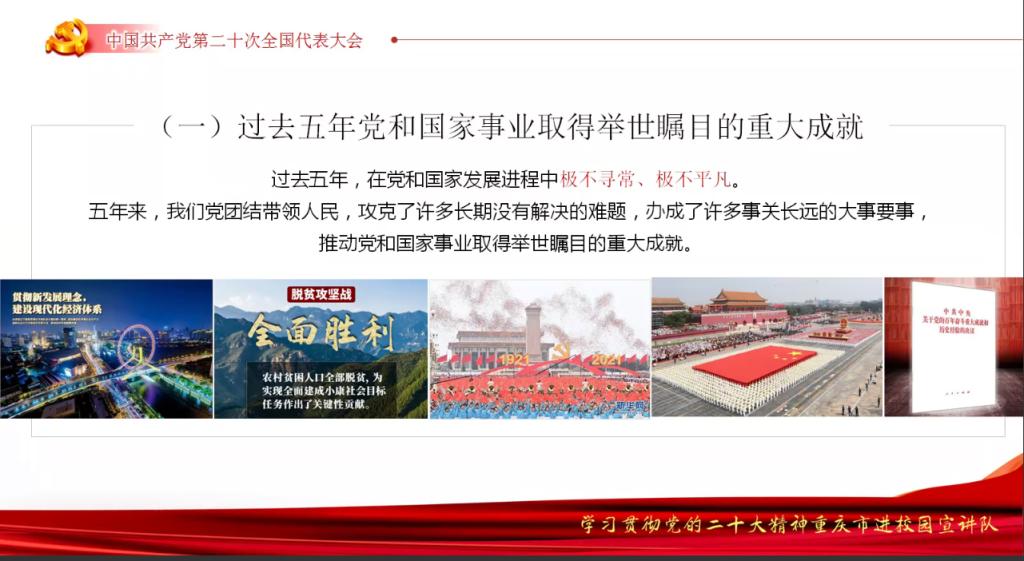 陈善国主要从如何理解二十大报告的精髓要义进行宣讲,引导同学们认真学习宣传贯彻党的二十大精神,深入学习领会党的二十大主题、主要成果、过去五年的工作和新时代十年的伟大变革。陈善国表示作为一名入党积极分子除了要认真学习有关二十大精神的宣讲,也要认真研读二十大报告全文,深刻把握和理解党的二十大精神的内涵实质。