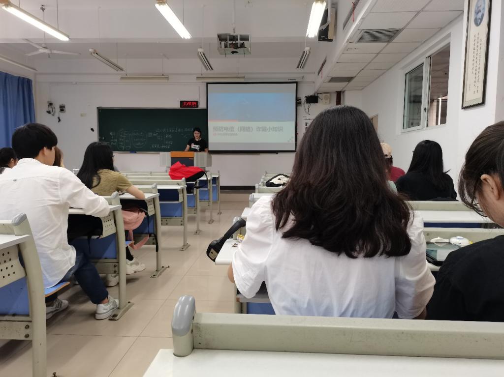 班长舒开颜围绕青春防骗课本》向全班同学做了介绍,以现今电信网络诈骗的高发态势分析为切入点,就如何防范电信网络诈骗及保护人身财产安全同学们带来了一堂生动的反诈课