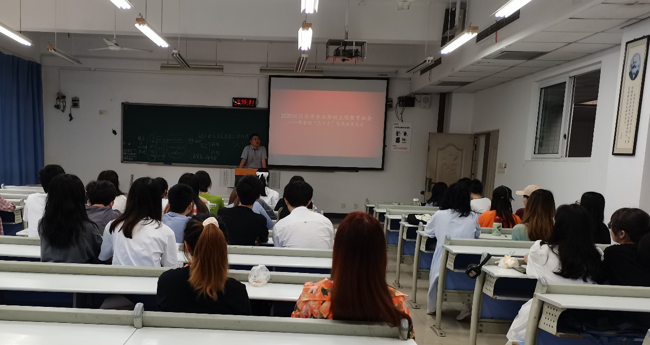 为了加强同学们对暑期"三下乡"社会实践活动的了解,引导学生入基层受教育、长才干、做贡献社会学专业张东老师和袁博老师紧接着为同学们开展了劳动教育主题班会暨暑期三下乡社会实践动员大会,向同学们介绍了今年社会学专业暑期三下乡实践活动的主题、要求和开展形式动员同学们积极参与,提升专业能力的同时为成渝双城经济圈建设和乡村振兴贡献青春力量。
