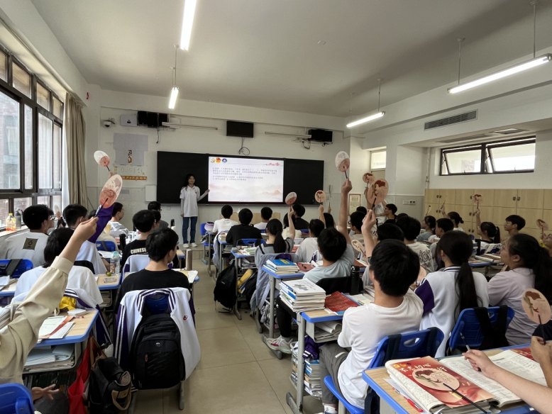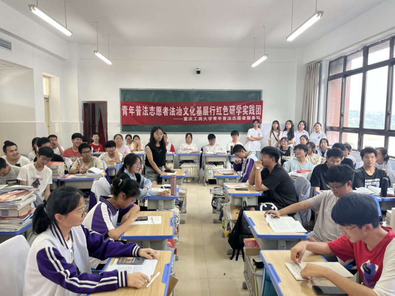 7月11日,太阳成tyc234cc青年普法志愿者法治文化基层行红色研学实践团成员走进忠县忠州中学高二(28)班,通过讲故事和知识竞答的方式,将中国共产党的由来娓娓道来,介绍了中国共产党在创建时期、大革命时期、土地革命时期、抗日战争时期、解放战争时期、社会主义建设时期以及改革开放时期各阶段标志性事件,向高中生们充分展示我党百年奋斗的伟大历程和重大成就,让同学对中国共产党有了更全面、系统地了解,增强少年群体对党和国家的认同感和自豪感。