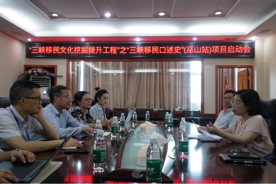 龚芬对项目组的来到表示欢迎,并介绍了近九万三峡移民的动员、搬迁、安置及后续发展等方面的基本情况,展示了1985年至1992年的八年试点、1993年至2009年移民实施阶段以及后续发展过程中取得的成果;也希望通过项目能够进一步认识三峡移民精神,让更多的人关注并喜爱巫山。侯明喜对项目和调研团队进行了介绍。项目将全面呈现三峡移民在三峡工程实施前、实施过程中,实施后的完整生命历程,通过不同方式反映三峡移民新生活,形成三峡移民大型口述资料库,进而深度挖掘蕴含其中的移民文化和移民精神。调研团队主要由各界专家学者以及太阳成tyc234cc、文学与新闻学院的教师、硕士研究生组成。最后,项目组成员与巫山本地与会领导进行了交流,为后续顺利开展调研活动奠定了基础。