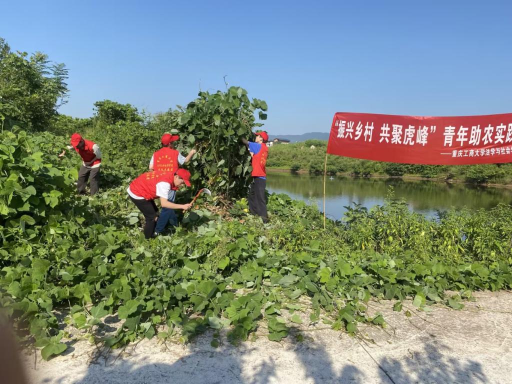 为进一步深入调研铜梁区虎峰镇回龙村特色农业发展的具体情况,助力回龙村产业振兴,大学生志愿者将目光聚焦回龙村的李子园,回龙村村支书冉顺江的带领下访谈周边村民开展产业调研。回龙村以盛产美味李子而闻名李子园的维护面临着一些困难,其中之一就是杂草的生长严重威胁着李子的产量和品质。为了帮助李子园解决这一难题,实践团成员自发组织起来,带上锄头、镰刀等工具,前往李子园进行全面的除草工作并实地拍摄李子园宣传视频为李子销售和包装贡献智慧和力量
