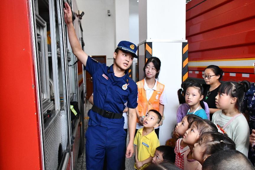 随着夏季气温不断升高,火灾事故安全隐患突出,为进一步提升少年儿童的消防安全意识,加强社区消防安全教育,7月22日,大学生志愿者带领15组家庭成员走进南岸区弹子石消防中队学习消防安全知识。