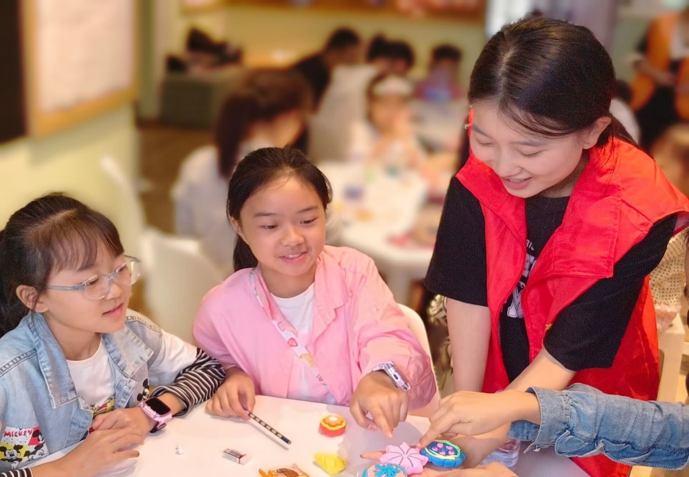 志愿者通过猜灯谜、讲故事等多种形式为社区居民介绍了中秋节的由来以及有关中秋节的神话故事和习俗,小朋友们也积极地分享了自己知道的关于中秋节的知识。志愿者带领小朋友和家长一同用橡皮泥捏制了各式各样、独具特色的“月饼”,并用彩色笔在画纸上画出了中秋佳节亲人团聚的美好画面。在志愿者的鼓励和引导下小朋友们把制作的月饼和画送给了家长,以表达自己对家长的感恩之情。志愿者谭鑫表示:“作为大学生,我们应该深入挖掘传统节日中的文化内涵,同时也要积极探索弘扬传统节日文化精髓的创新途径。在活动中体验民俗风俗,在美食中享受亲情,推动传统文化创造性转化、创新性发展,让传统节日融入到日常生活中。”