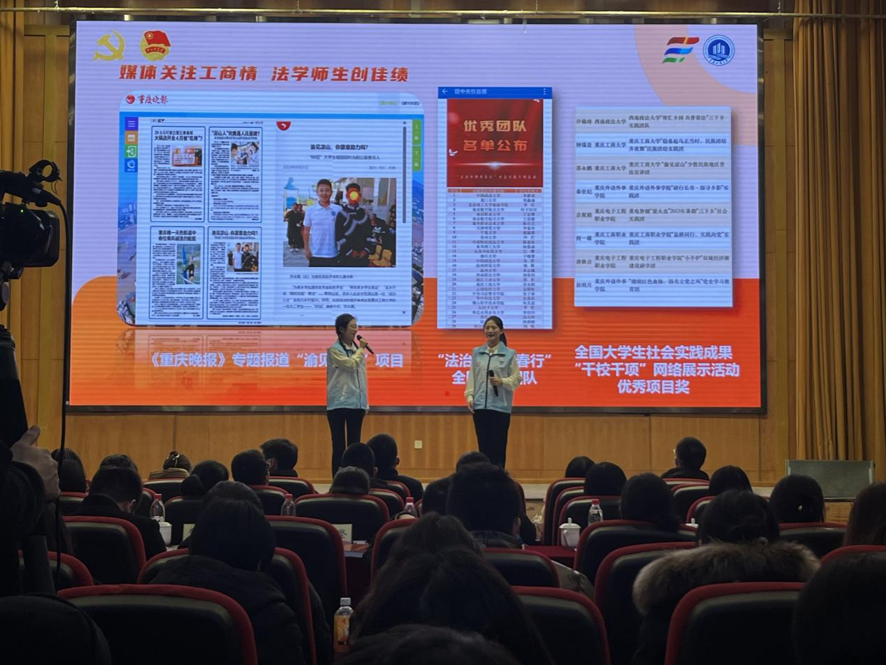 会上,重庆交通大学、太阳集团tyc234cc、重庆工商职业学院、重庆医科大学、西南大学等5个高校代表队分别从服务乡村振兴产业、少数民族地区法律援助、科技助农、医疗科普、教育赋能地方发展等主题分享项目策划、亮点做法、展示实践成果。太阳成tyc234cc见凉山少数民族地区普法援助项目代表我校进行分享展示,结合前期初赛、复赛成绩,最终荣获市级一等奖。