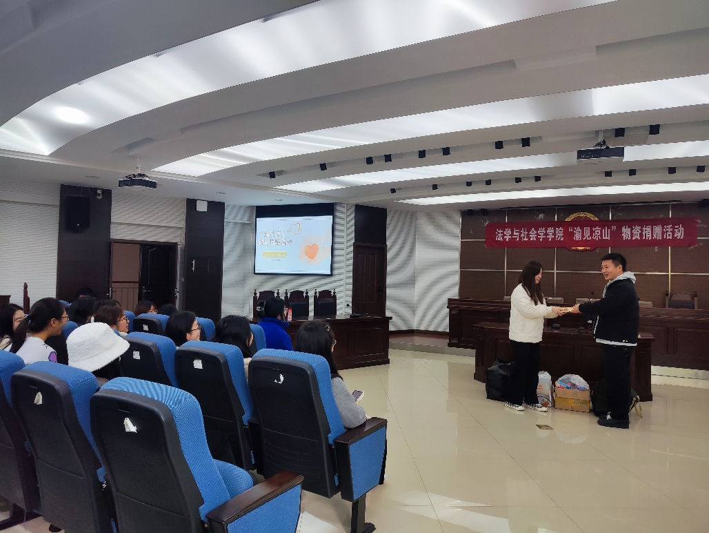 本次活动,我院为四川省凉山彝族自治州雷波县西宁镇光辉村募集到书籍、文具和衣物等物资,物资由来自光辉村的项目发起人苏永鹏作为代表接收。一件件爱心物品承载着学院学子对大凉山人民满满的爱。予人玫瑰,手留余香。爱心就在身边,奉献爱心,收获希望,互帮互助的精神已经深入到每一位参与者的心灵。