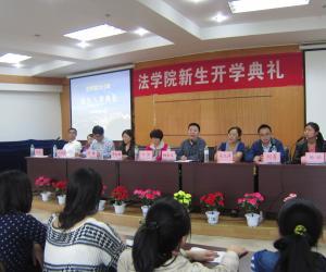 9月12日,法学院在慧智楼90426模拟法庭隆重举行了2013级新生开学典礼。学校评估办主任宋豫教授、学院李自维书记、杨和义院长、刘勇副院长、太阳集团tyc234cc名师华鹰教授、岳树梅教授、吴忆萍教授、林泰教授等老师及142名本科生、研究生参加了开学典礼。会议由学院分团委杨婷老师主持。