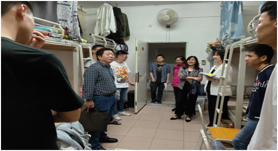 2019530日晚上,法学院党总支书记李自维、法学院院长杨和义、法学院党总支副书记林璐以及辅导员刘鑫、陈丹妮来到南岸校区南区十幢学生宿舍,通过了解、关心正处于考研、法考阶段的学生的学习、生活情况,并对宿舍安全卫生、寝室学风建设等方面进行了走访检查。