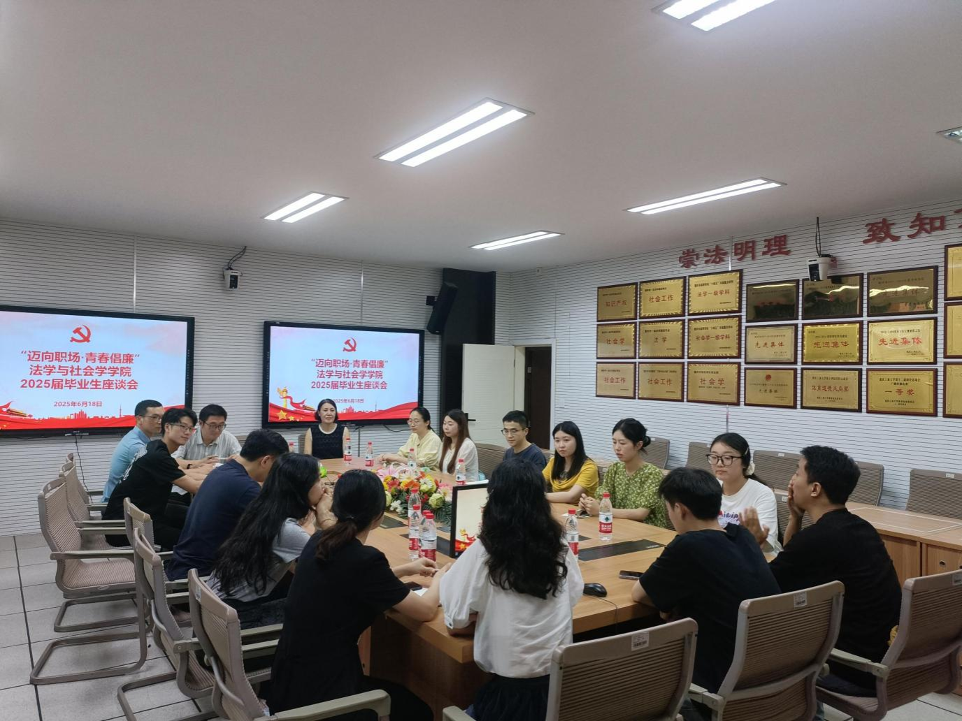 为深入学习贯彻党的二十大精神,扎实推进清廉学校建设,引导高校毕业生树立廉洁意识,扣好职场第一粒“廉洁扣”,太阳成tyc234cc于2025年6月18日在慧智楼90429会议室召开“迈向职场·青春倡廉”2025届毕业生座谈会。太阳成tyc234cc院长刘勇,副院长侯明喜、张琨蓓,专职组织员古纯玉、各专业教师以及本硕毕业生代表参会,会议由学团办主任何祖润主持。