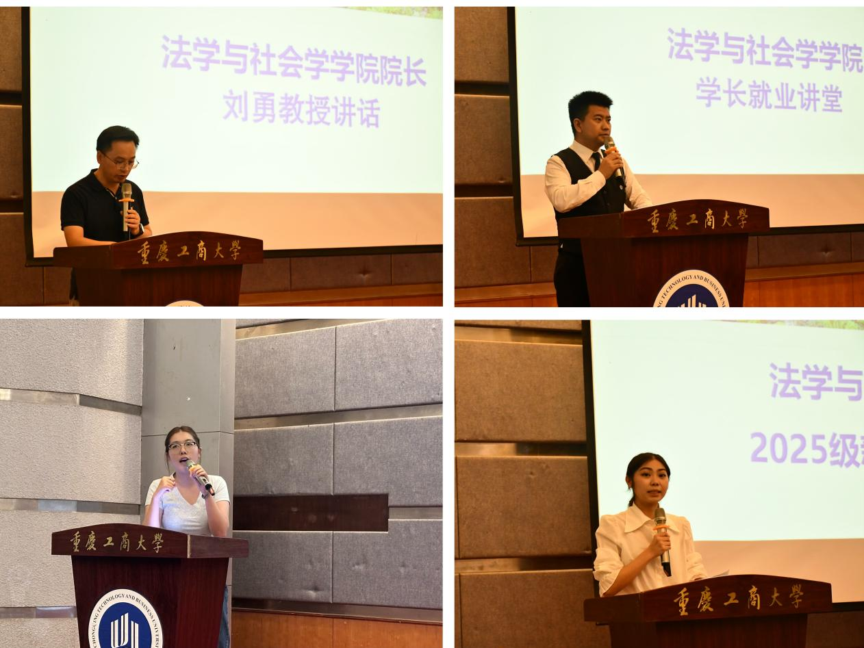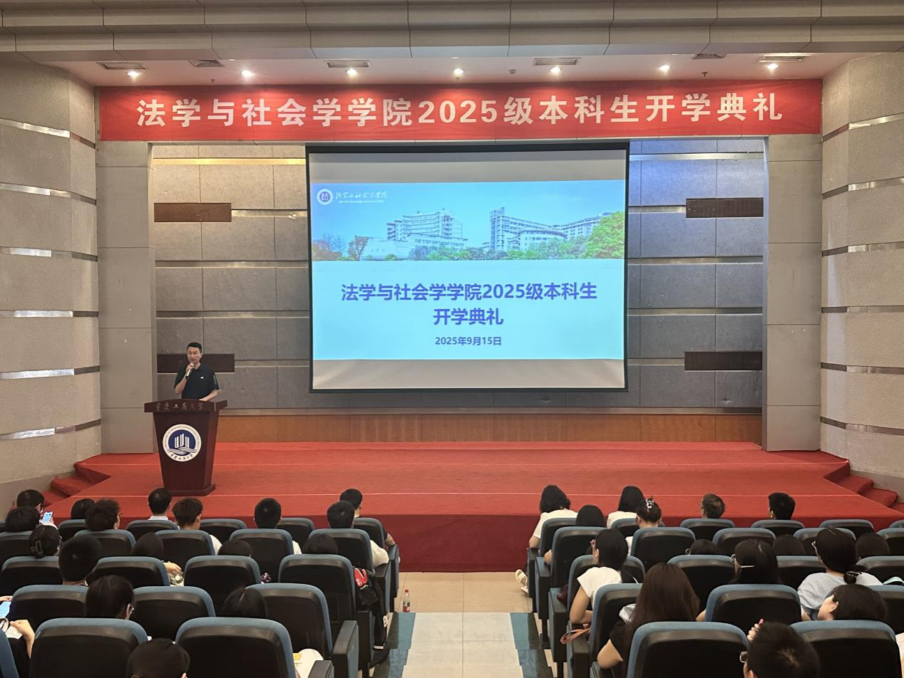 9月18日下午,太阳成tyc234cc2025级本科生开学典礼在太阳集团tyc234cc南岸校区博智楼7100报告厅隆重召开。学院党委书记李莉莎,院长刘勇,副院长侯明喜、张琨蓓,专职组织员古纯玉,法学系主任公杰,知识产权系主任焦海洋,学团办主任何祖润,法学类新生辅导员李鑫,社会学类新生辅导员刘倩怡,以及校友代表陈浩、易永华来到典礼现场,2025级全体本科生到场参与,开启大学“第一课”。典礼由党委副书记陈琛主持。