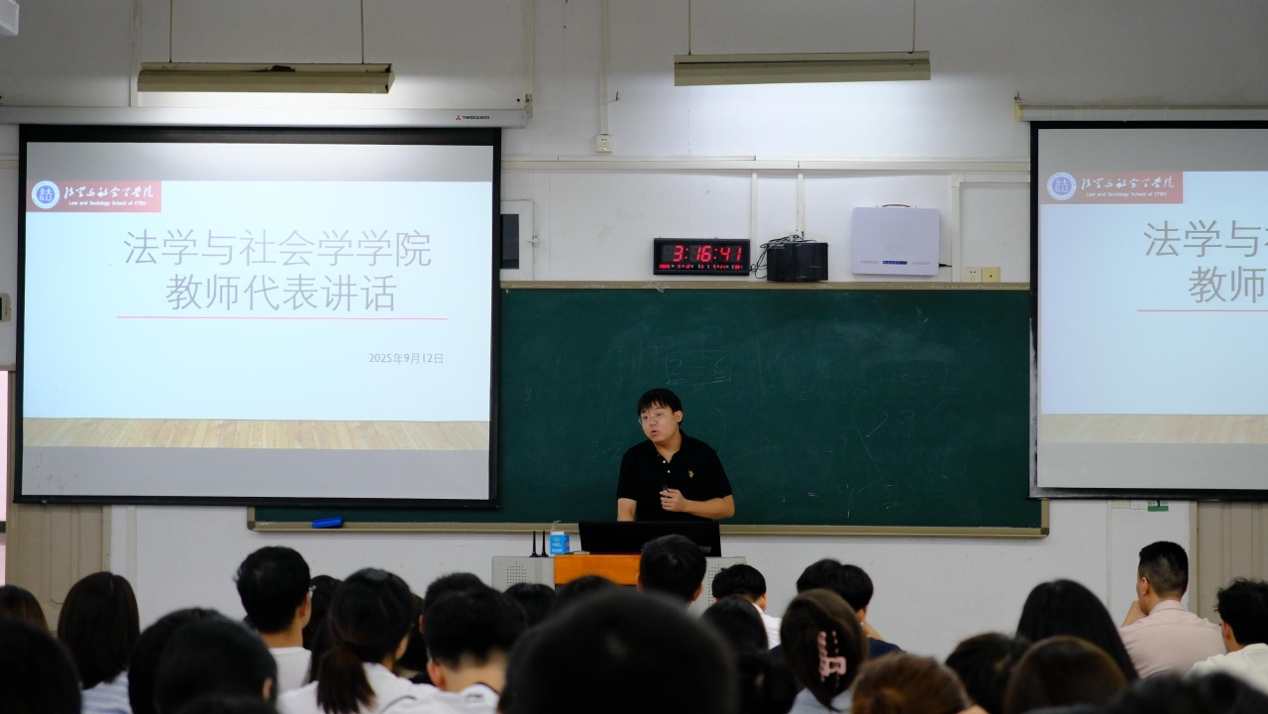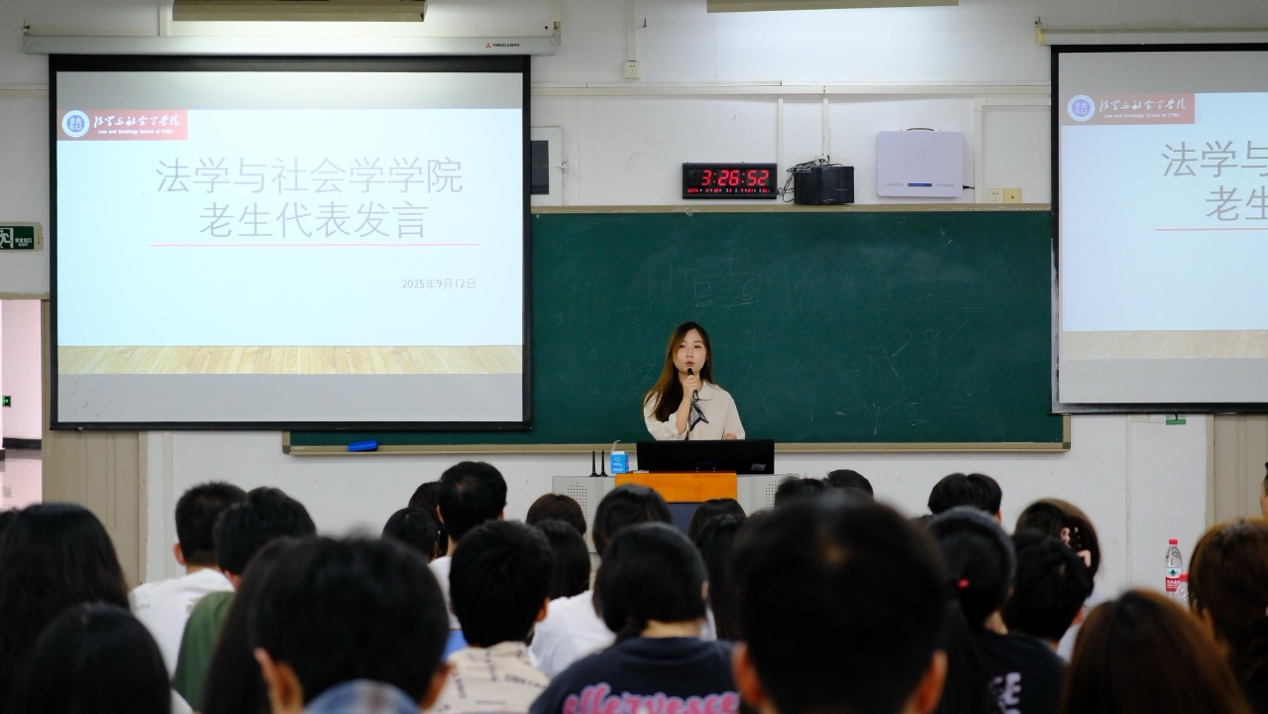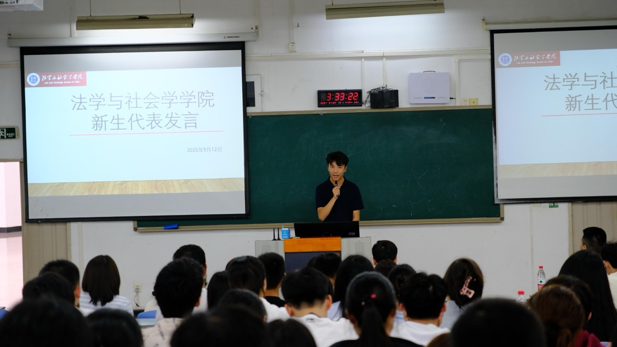 2025级法学研究生高玮丞作为新生代表向辛勤付出的领导老师、学长学姐表达由衷的感谢。他号召同学们铭记初心、尊师重道、潜心修学,努力成长为堪当民族复兴大任的时代新人。