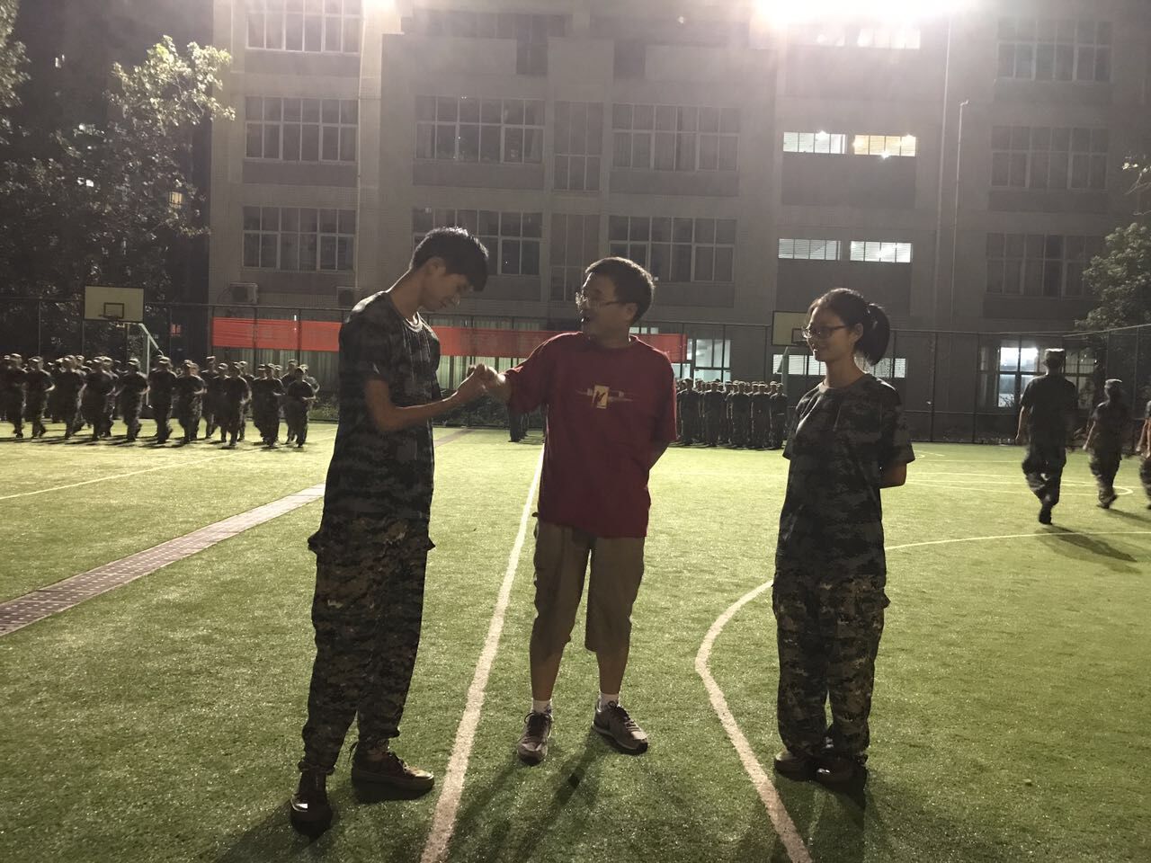 当晚,兰花湖片区的小篮球场上的军训活动正热火朝天的开展着。平易近人的简福平副书记来到现场为处于训练之余的法学新生答疑解惑,含蓼问疾,致力于为学生们提供一个如坐春风的训练环境,帮助学生们更快适应新学校的生活。简福平副书记要求学生们不仅要刻苦训练,发扬艰苦奋斗之精神,更要在休息之余积极为新学期的学习做准备,展现法学人吃苦耐劳,博学笃志之精神。