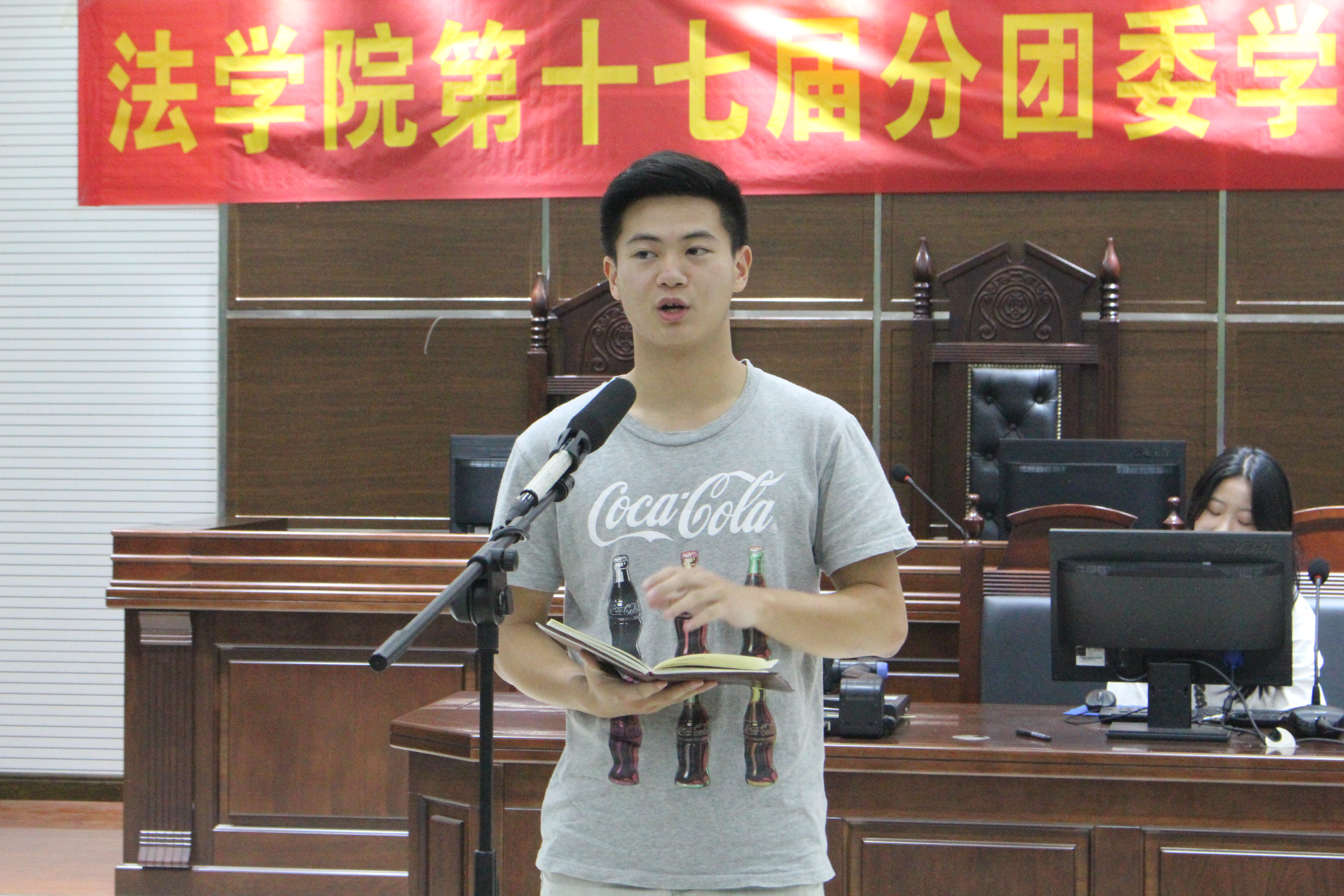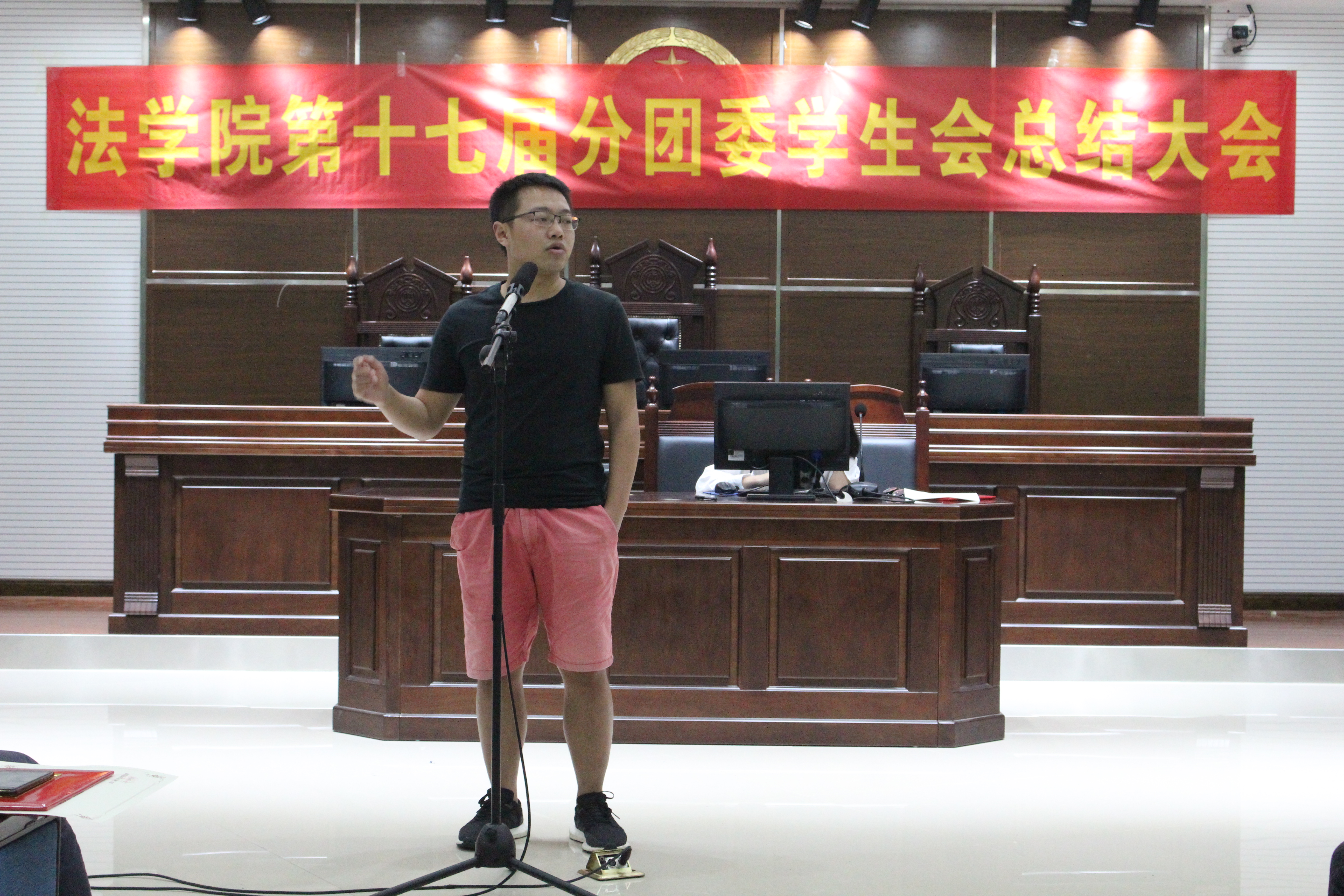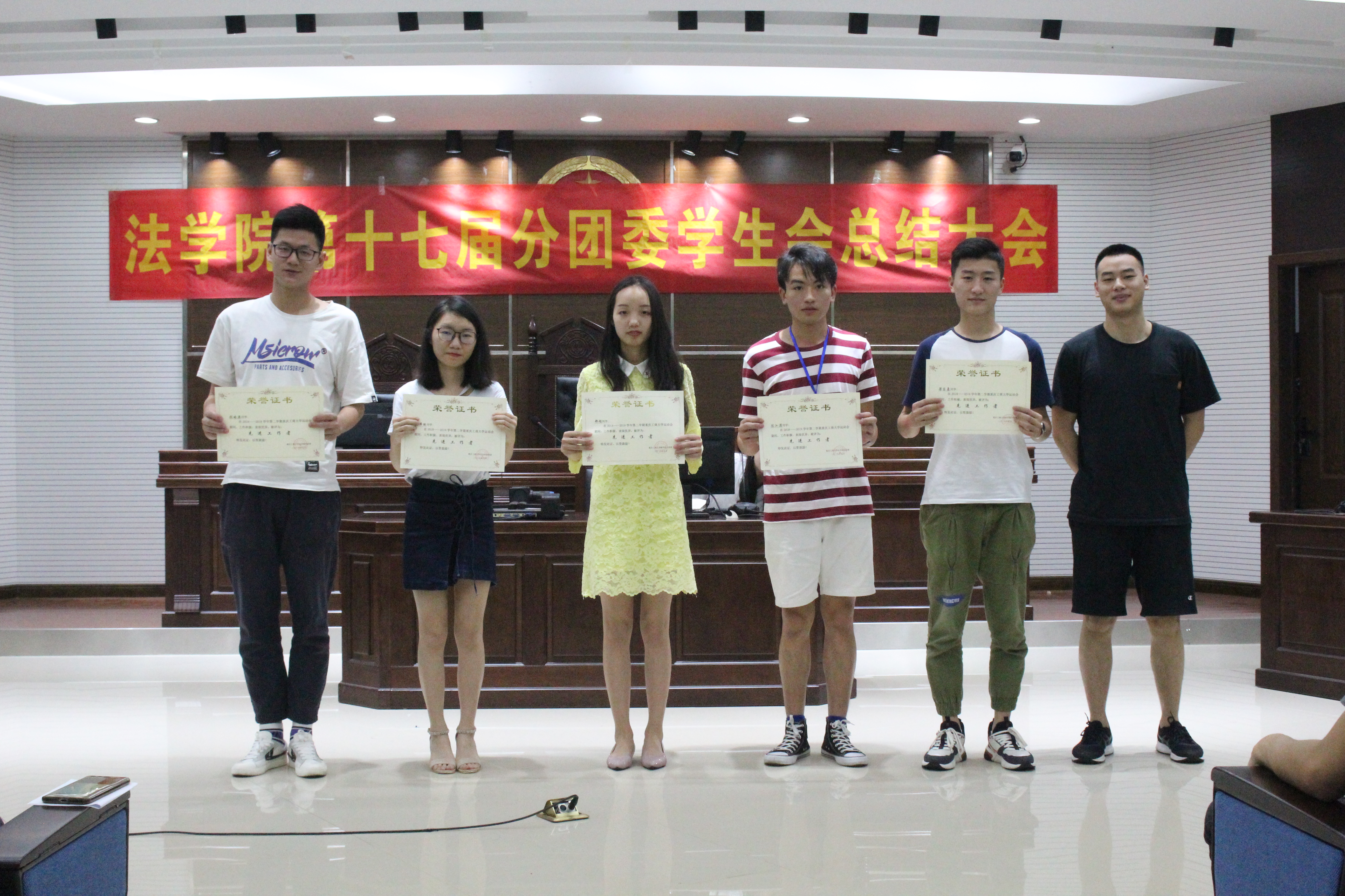 为推动法学院分团委学生会工作的长久发展,提高学生干部的工作热情,同时对本学年在工作中表现突出的学生干部给予表彰,5月26日下午一点,第十七届分团委学生会全体成员在南岸校区慧智楼模拟法庭齐聚一堂,参加了2018-2019学年法学院第十七届分团委学生会工作总结大会。本次会议由组织部干事罗映雪主持,出席此次大会的嘉宾有法学院分团委书记罗观老师、法学院分团委副书记邓梓涵、学生会主席张旺、学生会副主席王攀、副主席闫钰涓。