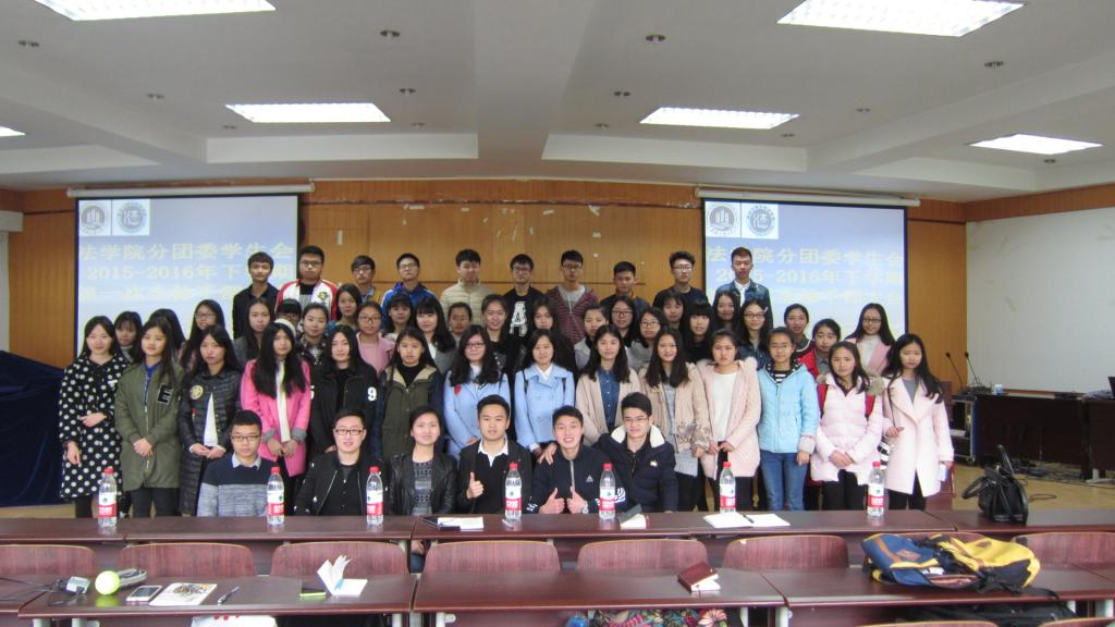 伴随着和煦的春风,结束了美好的寒假,工商的学子也逐渐回到学习的状态。2016年3月11日中午,法学院学生会在九教模拟法庭举行了本学年第一次全体会议,法学院分团委书记杨婷老师、副书记覃橹宾及学生会主席团出席了本次会议,法学院学生会全体干部干事参加了会议。
