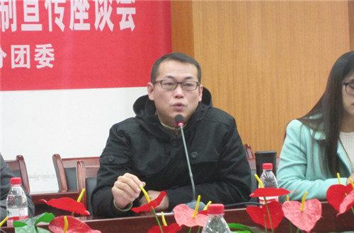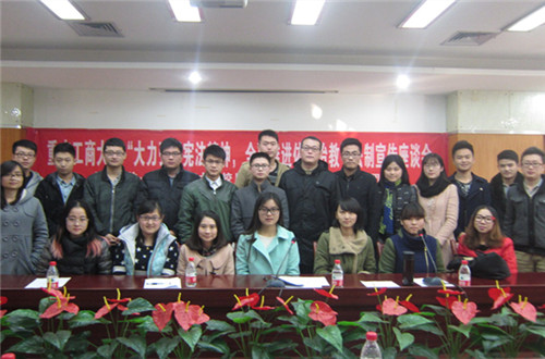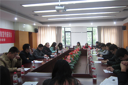 由太阳集团tyc234cc校团委主办、法学院分团委承办的“大力弘扬宪法精神,全面推进依法治教”法制宣传座谈会于2014/12/5下午14:00在厚德楼3020会议室成功举行!法学院副教授张忠民、法学院分团委副书记袁栋、主席张天宇、各个学院的优秀学生干部以及法学院学生会成员参加了此次座谈会。