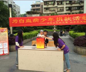 法学院义工志愿者们再次与渝能国际社区协作,于2014年4月6号-4月8号在渝能国际,4月14号-4月15号在山水长天,4月16号在学府雅居,4月17号-18号在苹果城这三个地方为16岁白血病少年杨德兴募捐。了解到少年杨德兴的情况后,法学院义工志愿者协会义不容辞的积极参与进来,维持秩序。社区居民纷纷慷慨解囊,捐款相助,在社区里谱写了一曲爱的乐章。截止到18号下午5点募捐总金额为2万4千元。