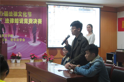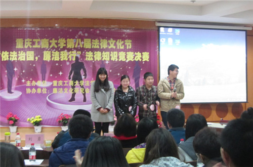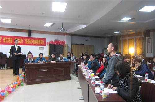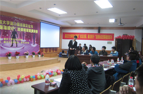 为增强全校学生的法律意识,提高大家对法律知识学习的兴趣。我院于12月12日晚7点在太阳集团tyc234cc慧智楼模拟法庭举办“依法治国,廉洁我行”法律知识竞赛决赛。党总支书记李自维教授、团委书记刘鑫老师、院长杨和义教授、副院长刘勇教授、刘波教授及法学院师生代表均出席本次活动,经过初赛的角逐共有四支队伍闯入决赛。