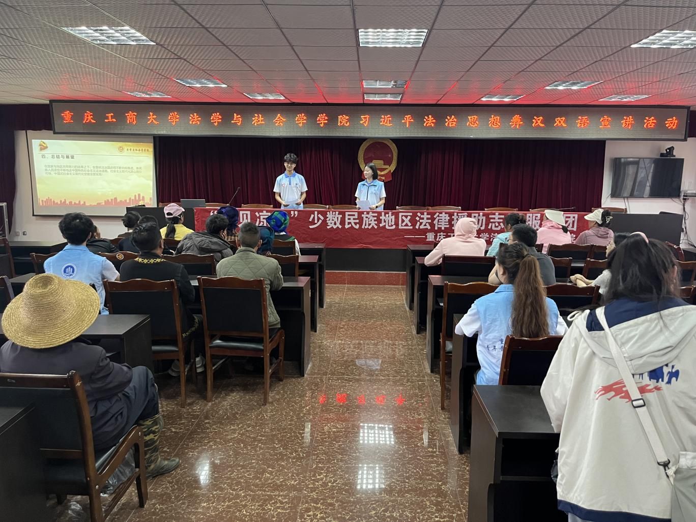 为进一步推动少数民族群众学习领会习近平法治思想,完整准确把握习近平总书记关于加强和改进民族工作的重要思想,推动少数民族地区法治建设,2024年7月11日,太阳成tyc234cc党员师生组建“渝见凉山”法律援助团,走进四川省凉山彝族自治州西昌市大兴乡政府开展以铸牢中华民族共同体意识为主线的习近平法治思想彝汉双语宣讲。