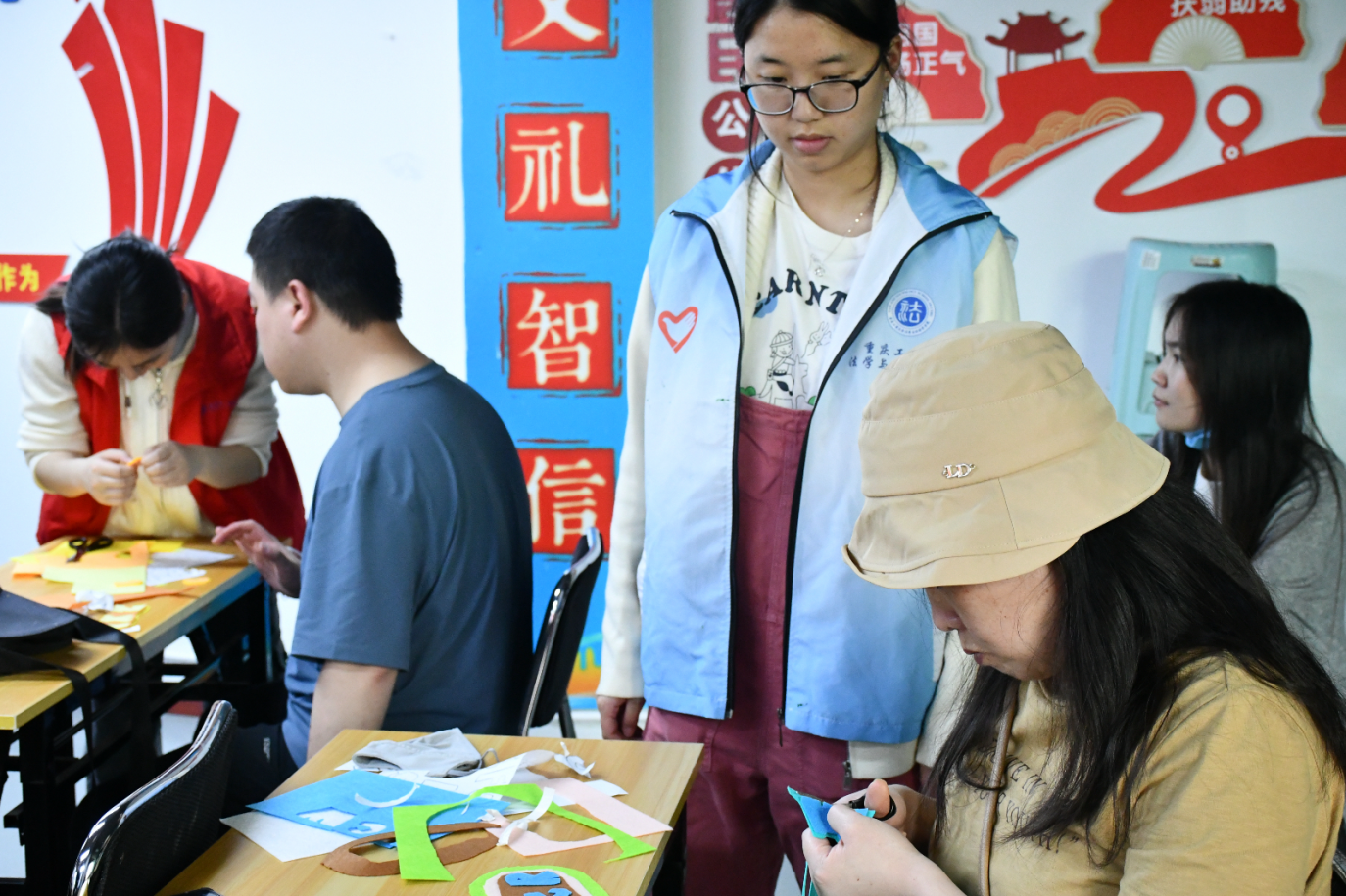 在精神健康问题日益受到关注的当下,如何帮助精神障碍患者更好地融入社会、提升生活质量成为重要课题。为积极响应社会对精神障碍患者关怀的号召,太阳成tyc234cc“益起爱”青年志愿者服务队于2025年4月23日在南岸区玛瑙溪社区居委会开展以“巧手织名,‘布’同凡响”为主题的社区康复活动,为精神障碍患者送去温暖与关怀。