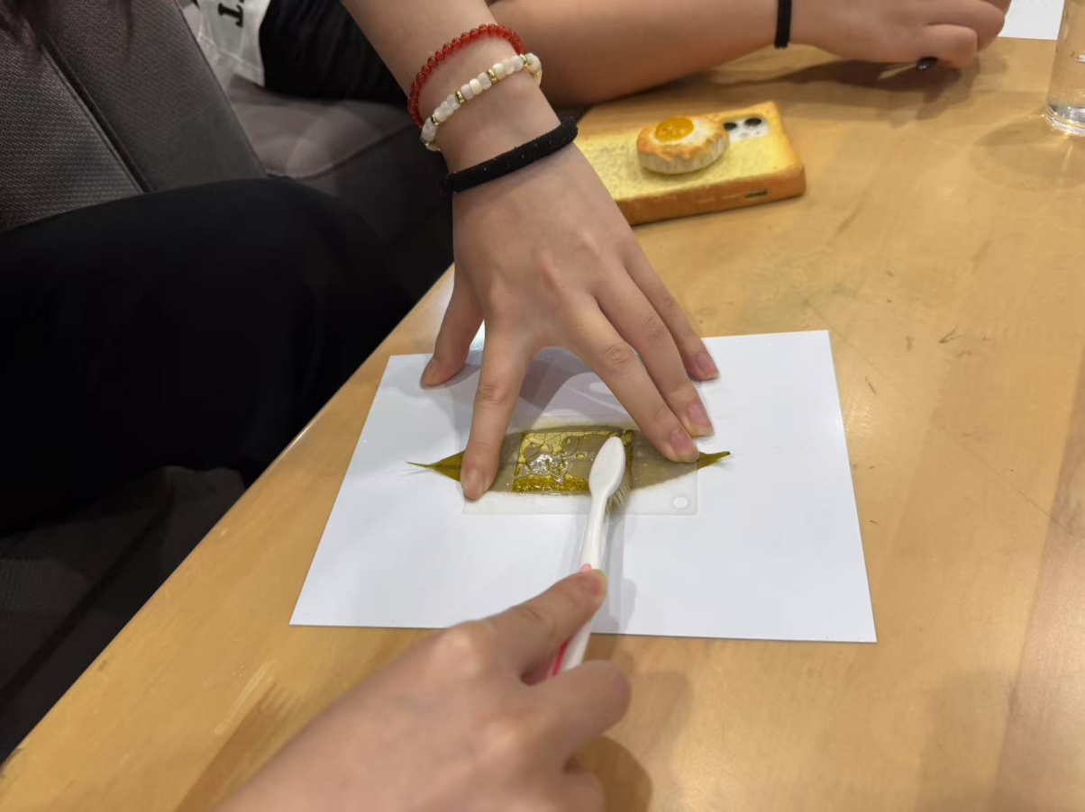 实践环节中,师生们以小组形式围坐操作台,李明贵对每件作品进行个性化指导。两小时的创作中,素净的银杏叶化身艺术载体:有的镌刻诗词名句,有的勾勒校园建筑剪影,更有跨学科创意作品如“量子叶雕”“AI算法纹样”等,展现了传统技艺与现代思维的碰撞。