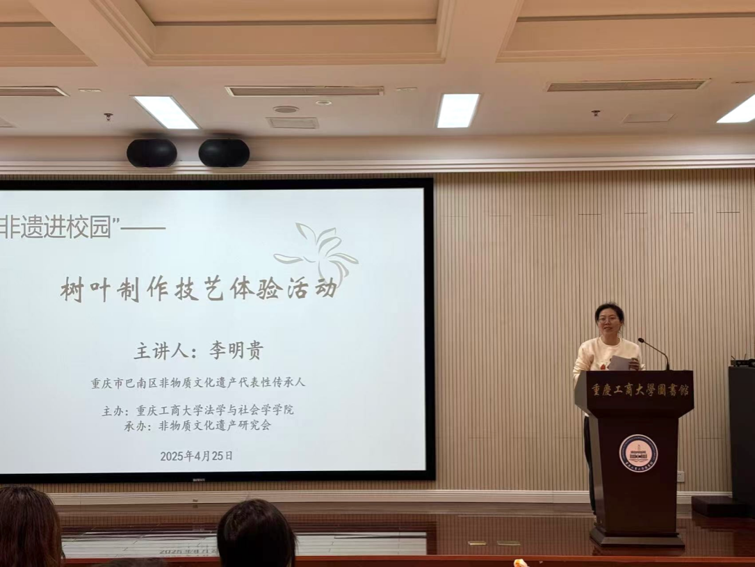 近日,由太阳集团tyc234cc非物质文化遗产研究会主办的非遗文化体验活动在南岸校区图书馆视听阅览室举行。活动特邀国家级非物质文化遗产传承人李明贵现场展示树叶雕刻技艺,吸引了全校众多师生参与。活动由太阳成tyc234cc付海鸿老师担任主持人,通过“讲解+实践”的沉浸式体验,带领师生感受非遗技艺的魅力,活动全程互动热烈。