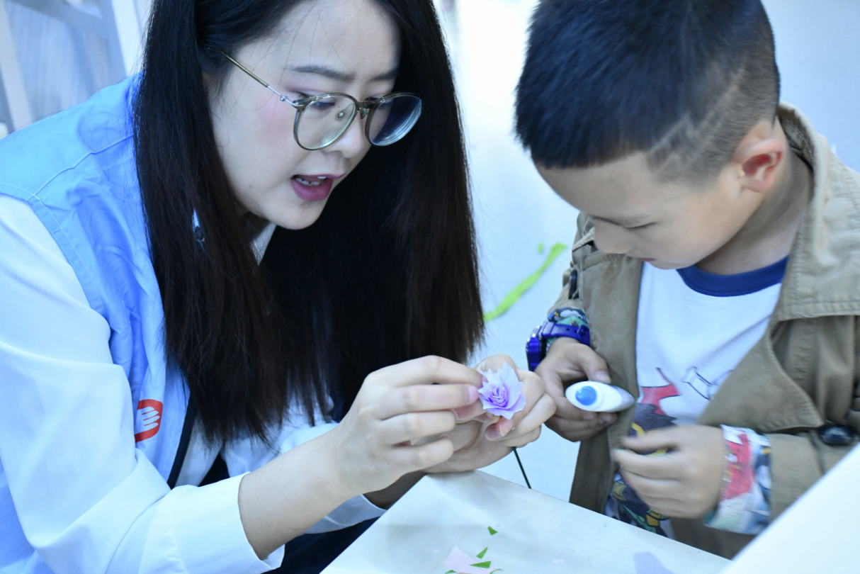 青春志愿行,温暖母亲心。主持人向小朋友们介绍康乃馨作为母亲节象征的特殊意义,并带领小朋友们学习制作过程并进行演示。在互动过程中,志愿者们鼓励并引导小朋友们发挥自己的创意,不仅培养了小朋友们的动手能力,同时也让他们体会到用心准备礼物的意义,体现出他们对母亲的爱与感激。活动结束后,全体成员合影留念,小朋友们将用心制作的康乃馨带回家送给母亲以表达感恩的心。