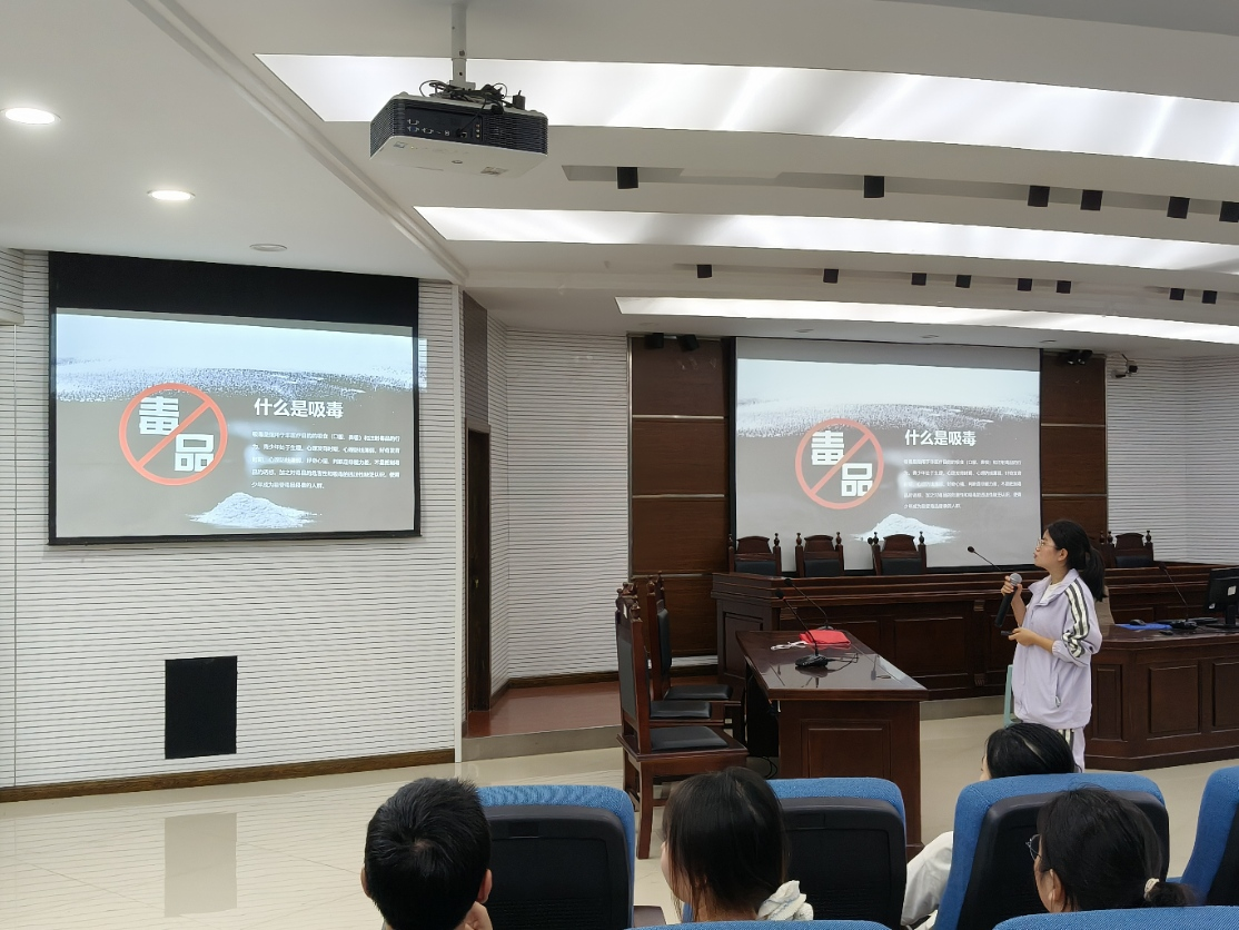 当前毒品问题形势严峻,新型毒品常伪装成 “奶茶”“跳跳糖”“电子烟油” 等普通食品、饮品,隐蔽性与迷惑性极强,对青少年身心健康构成严重威胁,部分青年面临学业、就业、人际等多重压力,存在因寻求错误解压方式陷入毒品陷阱的风险。为进一步在青年大学生中宣传毒品危害和禁毒知识,10 月 13 日中午,由太阳成tyc234cc分团委主办、大学生廉洁文化研究会承办的 “青春不‘毒’行,安全伴我行” 禁毒修身主题分享会在慧智楼模拟法庭成功举办。