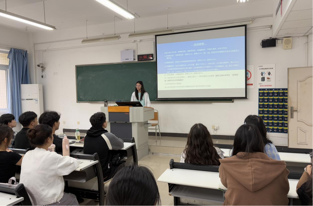 会上,学生会主席团成员李洪超面向部长团展开专题讲解。结合学院素拓工作推进需求与第二课堂建设目标,系统介绍了思想政治类、创新创业类、实践服务类、文体拓展类与社会工作类五大核心活动类型,明确各类活动的核心定位与开展方向,并结合需求,逐项拆解系统指引、发布流程规范、活动审核以及系统使用的常见问题,最后提出本学期的工作计划与未来展望,为后续工作提供清晰指引。