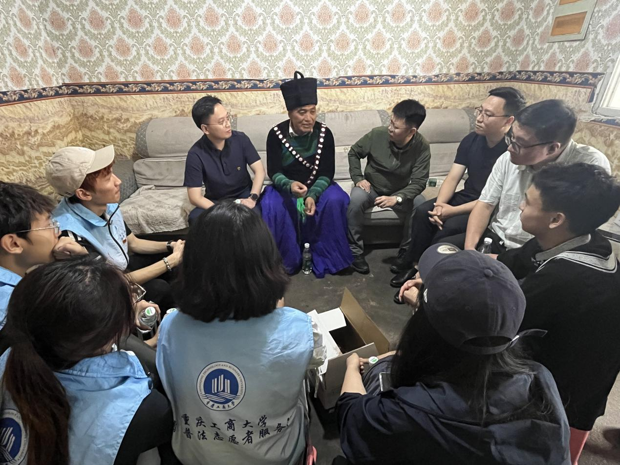 随后,师生团队走进甘洛县吉米镇阿沙莫村专访民间德古阿支巫甲子,访谈全程由彝族队员木乃以铁进行翻译。阿支巫甲子向团队讲述德古调解的日常,小到邻里家禽踩踏纠纷,大到家族财产分配矛盾,德古凭借威望与智慧,用传统习惯法化解纷争。谈及彝族山区的法治建设,阿支巫甲子感慨,过去村民因法治意识淡薄,在邻里纠纷、权益分配中易起冲突。如今,随着乡村振兴战略的深入推进,法律深入彝族村寨,村民遇到问题,既依靠德古调解,也学会找法律依据,“法治成了彝族人脱贫后守住幸福生活的‘护身符’”。