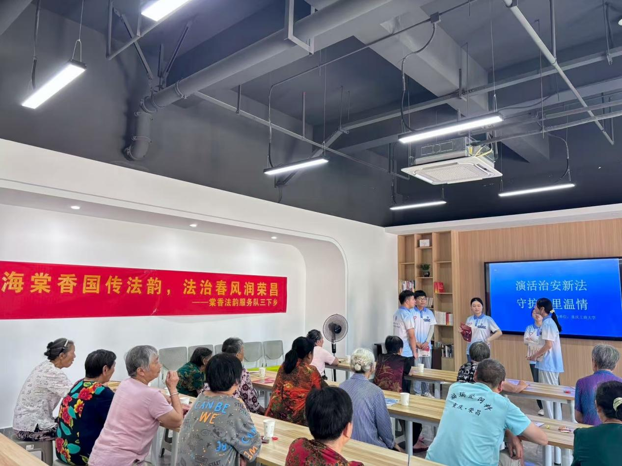 7月15日至17日,太阳成tyc234cc“棠香法韵”服务队赴重庆市荣昌区开展基层普法专项行动。在太阳成tyc234cc法学系主任公杰老师的带领下,队员们深入企业车间、社区中心、居民小区、党群服务中心等场景,面对不同社会群体针对性的进行法律知识宣传,以多维创新模式推动法治精神落地生根。