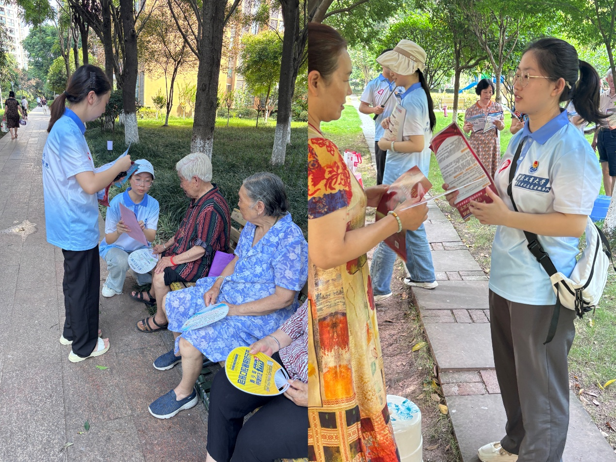 “李大爷,您看这个案例,骗子假装‘公检法’说您涉嫌洗钱,让您把钱转到‘安全账户’,这都是骗局!”在居民家中,队员们结合典型案例,用通俗语言向老年居民重点剖析“养老理财”“健康产品投资”等骗局套路;针对年轻群体专项解读“刷单返利”“征信修复”等新型诈骗话术,并发放针对性警示材料。团队宣传了10余种诈骗手段的识别方法,重点提醒老年人、年轻人等易受骗群体“不轻信、不透露、不转账”。此次活动在实践中提升了青年学子服务社会的使命感,为构建更高水平的平安社区、法治社区贡献了高校智慧与力量。