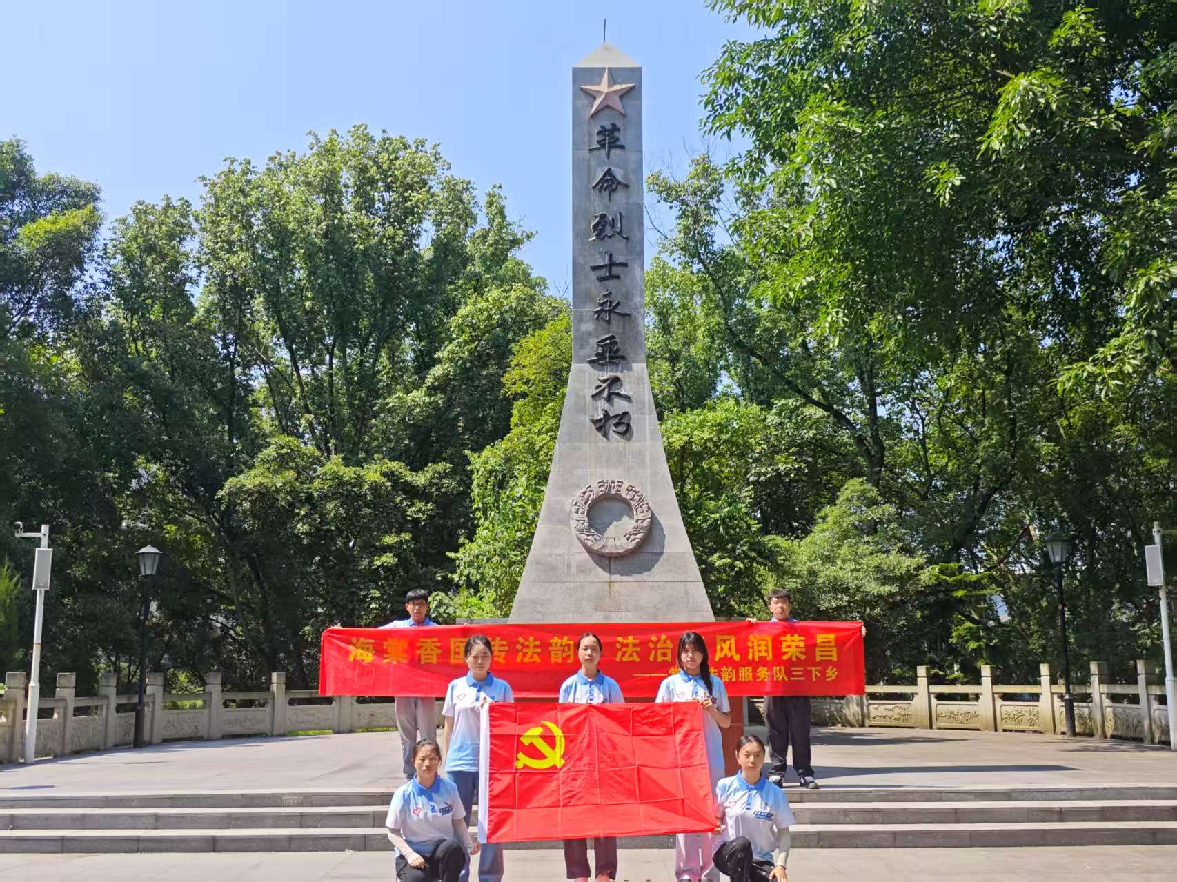 当日下午,团队转场荣昌烈士陵园与夏布小镇开展“红色+地方人文”研学活动。在荣昌烈士陵园,队员们瞻仰了镌刻在石碑上烈士们的事迹,感悟烈士舍身求义的革命精神。随后,团队走进夏布小镇,观千年出土文物,赏国家级非遗荣昌夏布精湛工艺,知地名“繁荣荣昌”之渊源。通过缅怀革命先烈、参观夏布小镇博物馆,队员们深刻认识到,法治建设与文化传承、红色精神一脉相承,唯有守护好历史根脉,才能让法治信仰更有温度。此次研学,了解当地历史文化与法治元素的融合,为法律宣传融入地方特色积累思路。