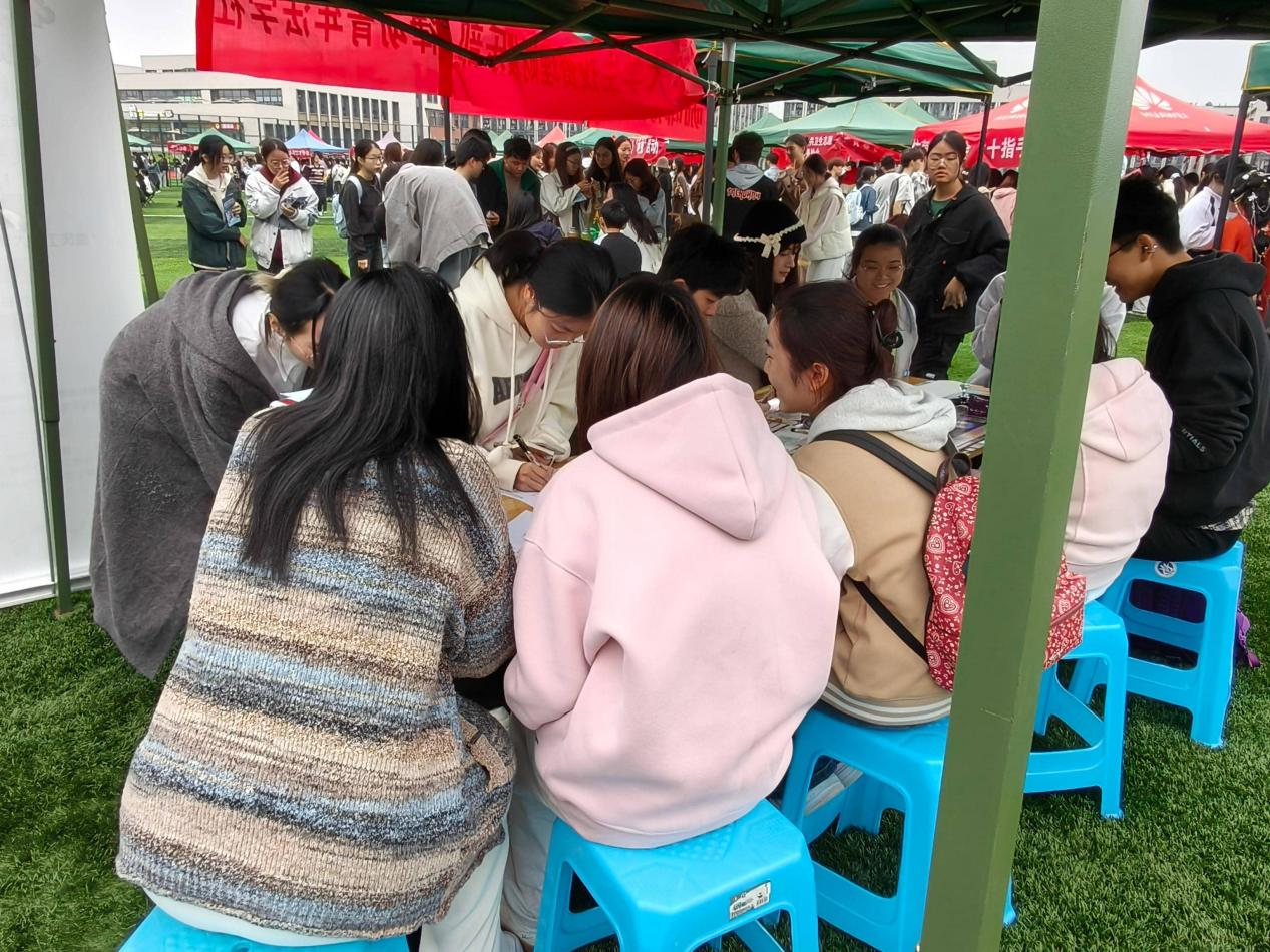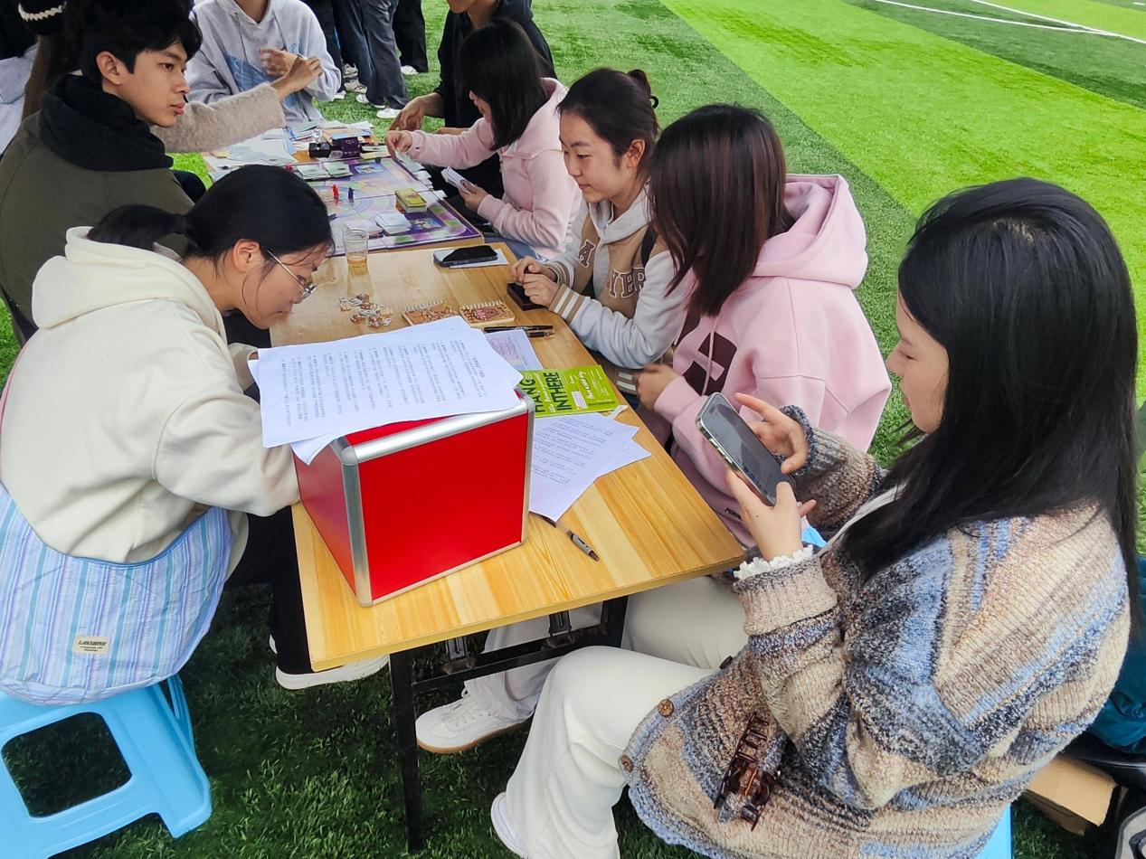 活动现场,同学们在法学社展位前排起长队,积极参与两大互动游戏。社团巧妙地将法律知识普及与同学们喜闻乐见的活动方式有机结合,为校园创意市集增添了一抹独特的光彩。
