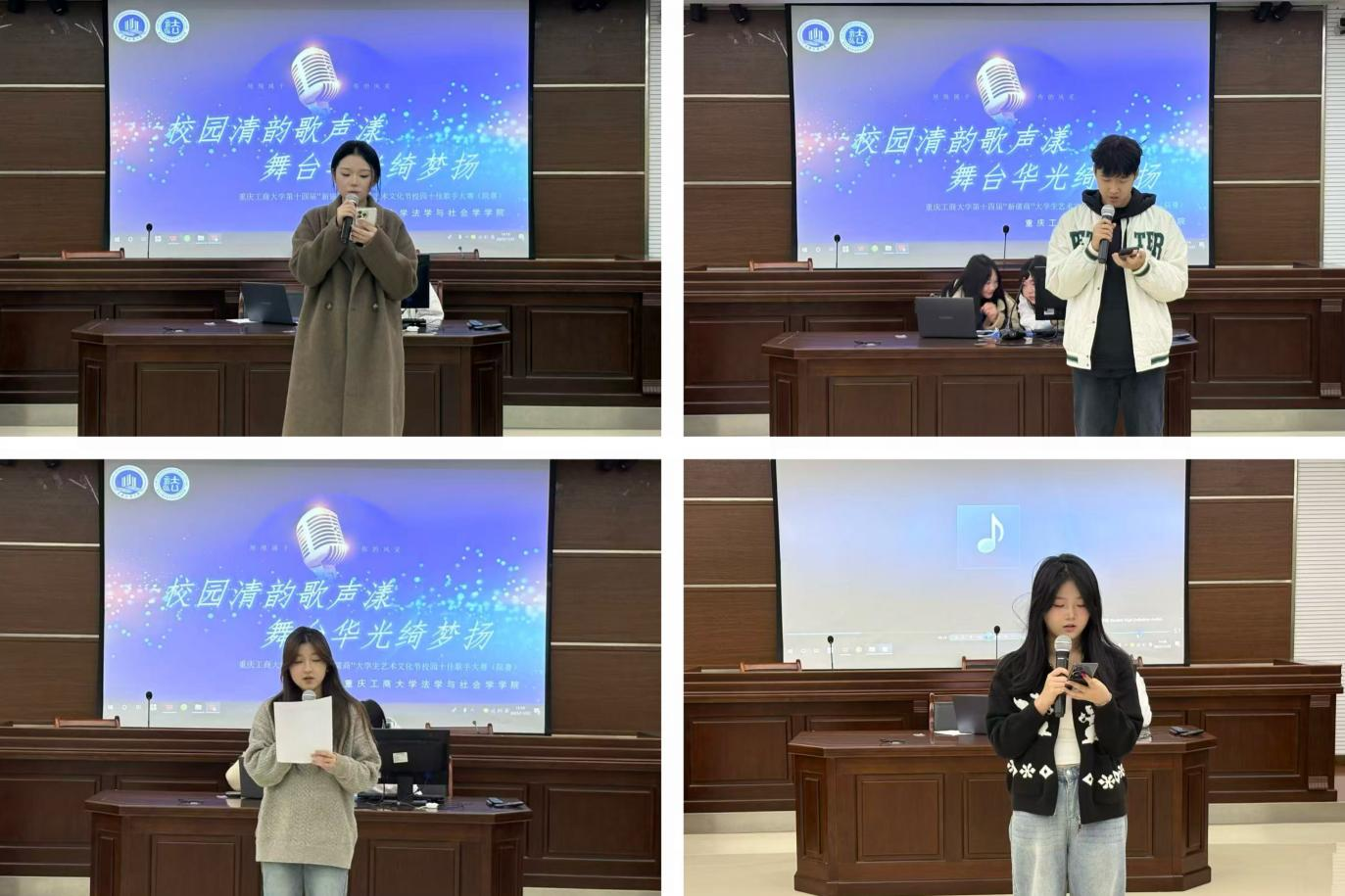 为深入学习贯彻美育教育理念,进一步营造积极向上的校园文化氛围,太阳成tyc234cc于2025年11月22日下午在慧智楼90426模拟法庭成功举办“校园清韵歌声漾,舞台华光绮梦扬”十佳歌手大赛初赛。太阳成tyc234cc上届十佳歌手大赛冠军罗拉初、校艺术团部门负责人李静、25级法律硕士班张溦桐担任本次大赛的评委。