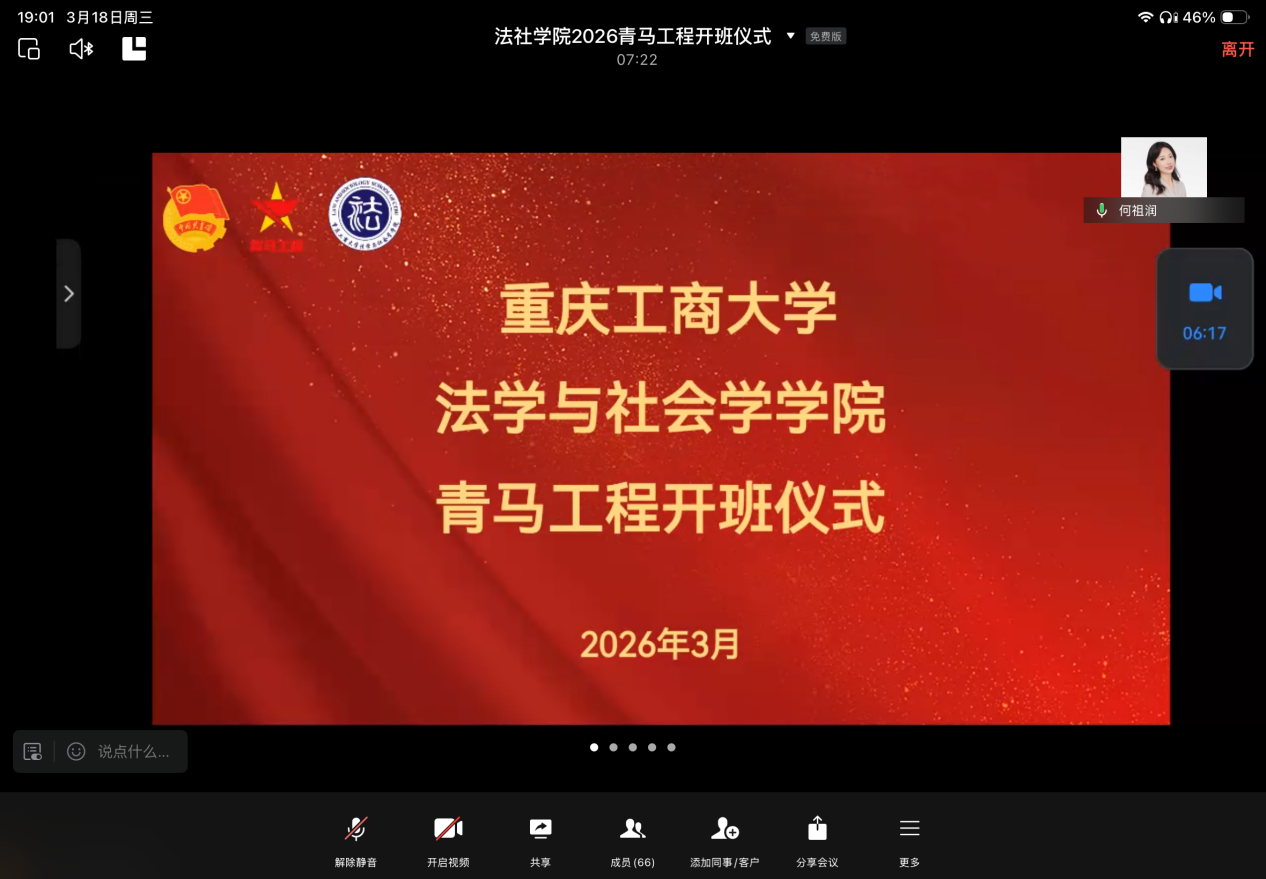 为进一步加强青年学生的思想政治引领,太阳成tyc234cc于2026年3月18日晚通过线上会议举办了2026年“青马工程”培训班开班仪式暨青年理论讲堂。本次开班仪式邀请到团市委高校工作部干部主讲,学院全体本硕团学骨干参会,会议由学院分团委书记何祖润主持。