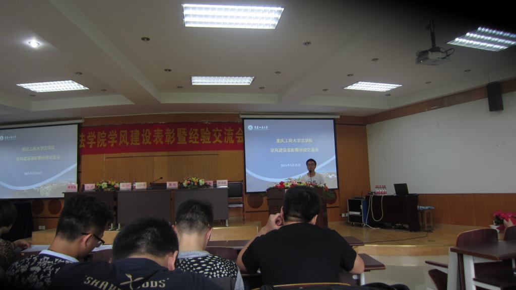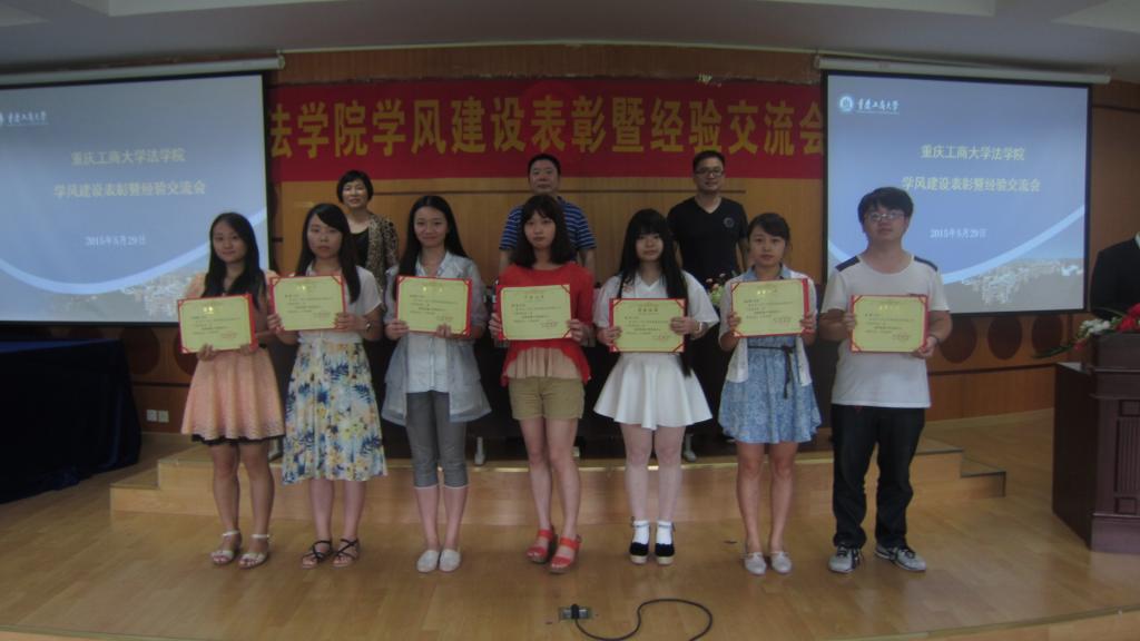 5月29日 下午,法学院学风建设表彰暨经验交流会在慧智楼模拟法庭隆重举行。出席大会的有学院党总支书记李自维教授、院长杨和义教授、副院长刘勇教授、学团办老师及2015届优秀毕业生代表等。