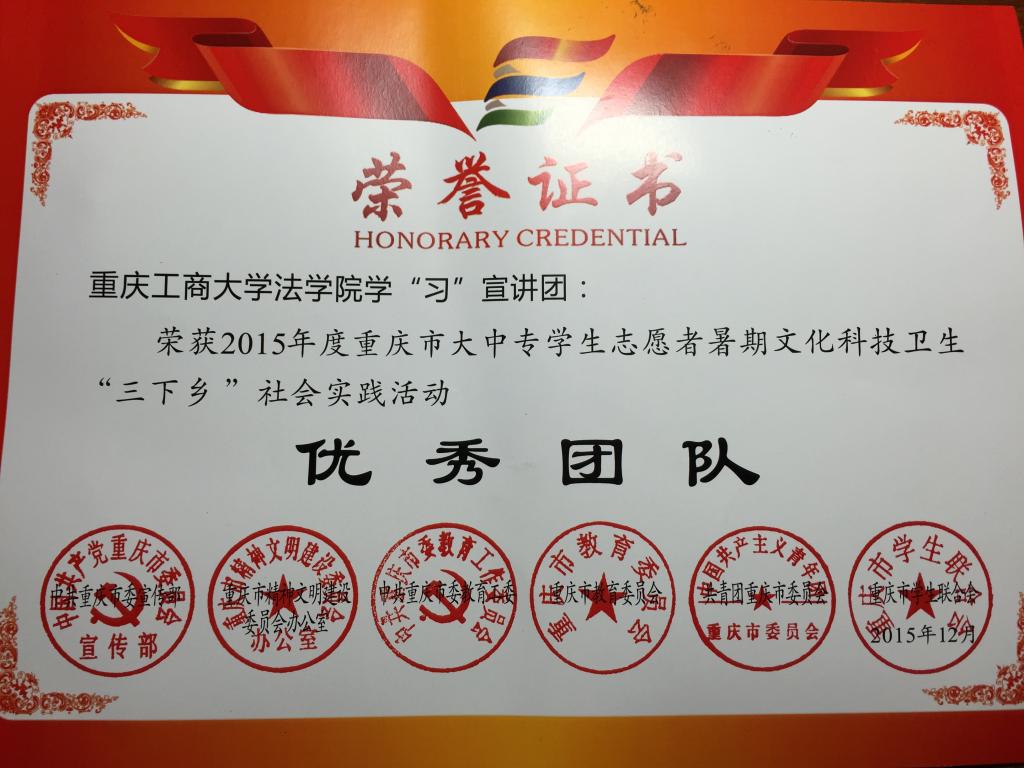 祝贺我院获2015年重庆市大中专学生志愿者暑期文化科技卫生“三下乡”社会实践活动优秀团队!