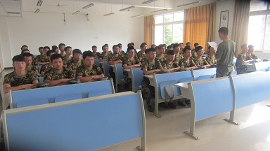 7月9日,又一个火热的日子开始了,下午赤日炎炎,太阳像蒸笼一样,操场上空无一人。原来同学们都到教室开始了下午的室内训练,唱军歌,拉口号,听教官讲解军史等活动丰富了同学们的军训生活