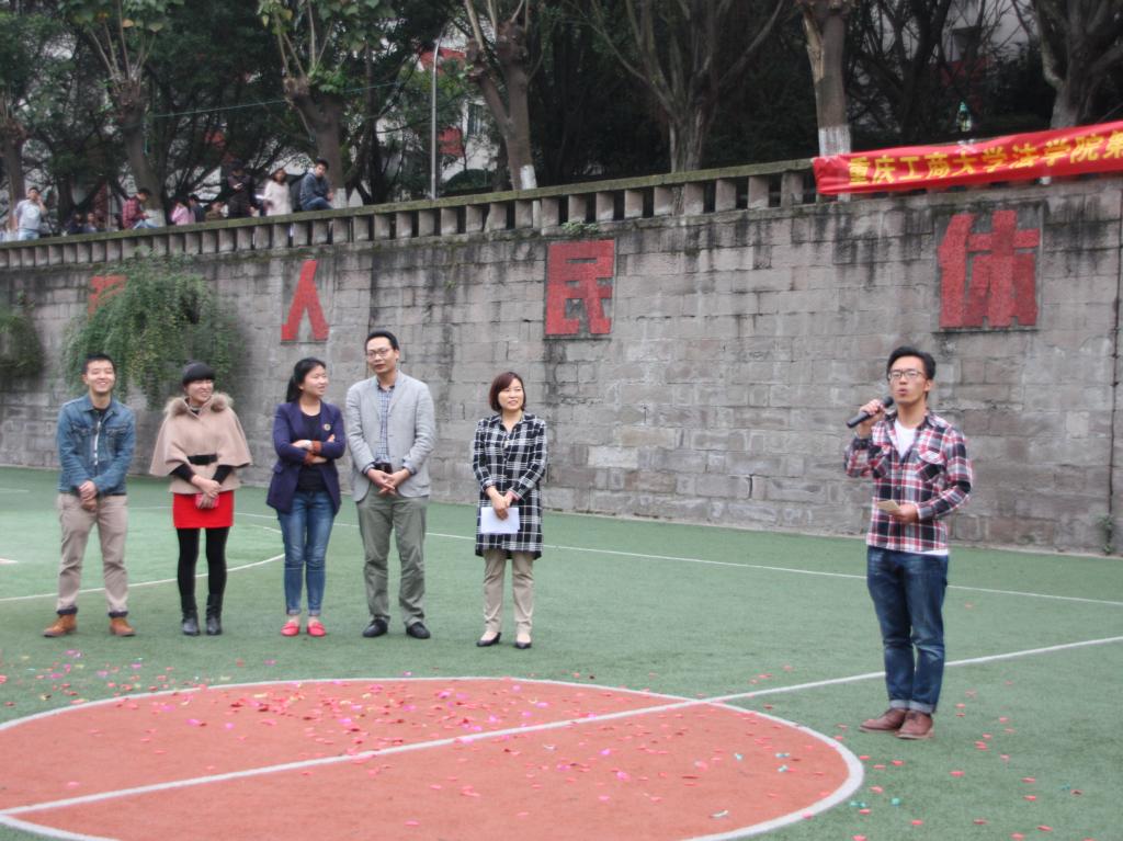 2015年11月9日下午5时30分,法学院第四届“众合杯”篮球赛在太阳集团tyc234cc主校南区篮球场顺利开幕,出席本次开幕式的有党总支书记李自维老师、分团委书记杨婷老师、党政办范志军老师、辅导员陈丹妮老师、辅导员刘鑫老师以及法学院全体篮球运动员代表等。