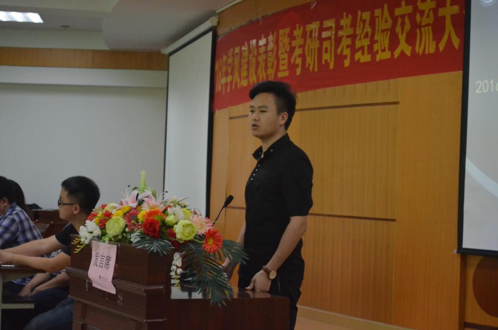 第二阶为经验交流2016届优秀毕业生先后上台为学弟学妹分享自己考研、司考成功的经验。优秀毕业生们向大家分享了他的大学期间学习和生活经历述了他的关于考研、司考心得,同时大家提出了一些实质性的建。并鼓励学弟学妹要迎难而上,不惧司考、考研,强调成功贵在坚持,考研、司考是一持久,要根据实际选择报校,合理时间,保持良好心态持到底,实现梦。这次经验交流会让学院的学弟学妹们受益匪浅。