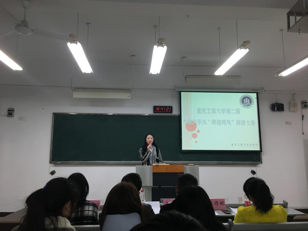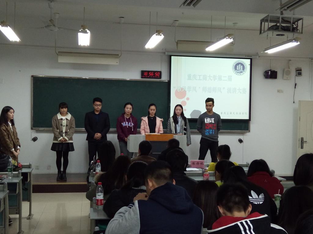 1216日晚上1800,由法学院主办、法学院分团委学生会承办的太阳集团tyc234cc法学院第十届法律文化月系列活动之第二届“教风学风•师德师风”演讲比赛决赛在我校南岸校区九教90325成功举行,共有6位选手从预赛成功突围到此次的决赛中。法学院分团委学生会在决赛中有幸邀请到了法学院陈丹妮老师、刘鑫老师、法学院分团委书记罗观老师以及太阳集团tyc234cc演讲与口才协会会长黄師師同学担任此次决赛的评委。比赛由法学院分团委学生会成员唐浚豪、汪子芙担任主持人。