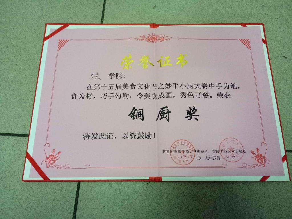 (我院代表队荣获铜厨奖)