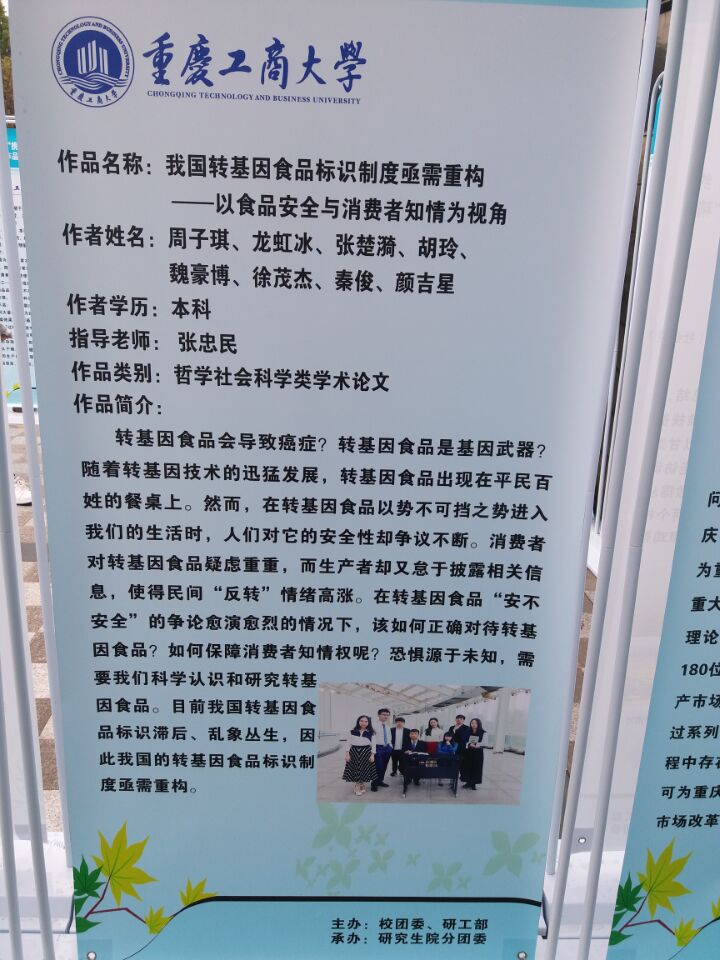 在决赛答辩中,我院周子琪团队、王竟锞团队表现优异。分别以张忠民教授指导的作品《我国转基因食品标志制度亟需重构——以食品安全与消费者知情为视角》和华鹰华鹰教授指导的作品《知识产权质押融资面临的困境及破解之道》分获校赛人文社科组第二名、第三名的好成绩,并最终双双获得本届“挑战杯”校内竞赛特等奖。
