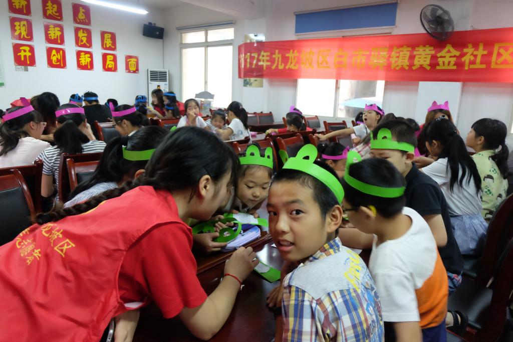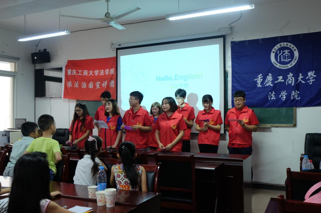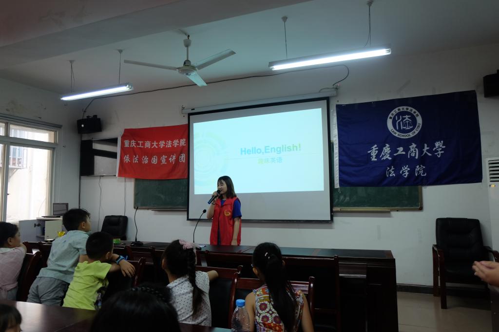 近日,太阳集团tyc234cc法学院的15名志愿者们在九龙坡区白市驿镇黄金社区的市民学校暑期嘉年华活动中开展了一堂妙趣横生、别开生面的少儿英语课。
