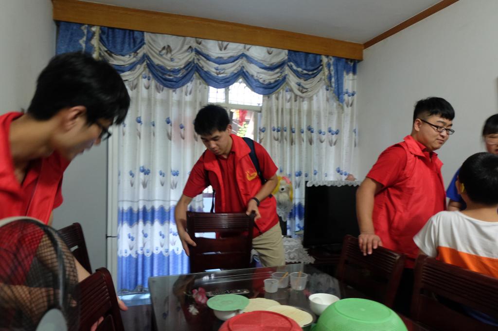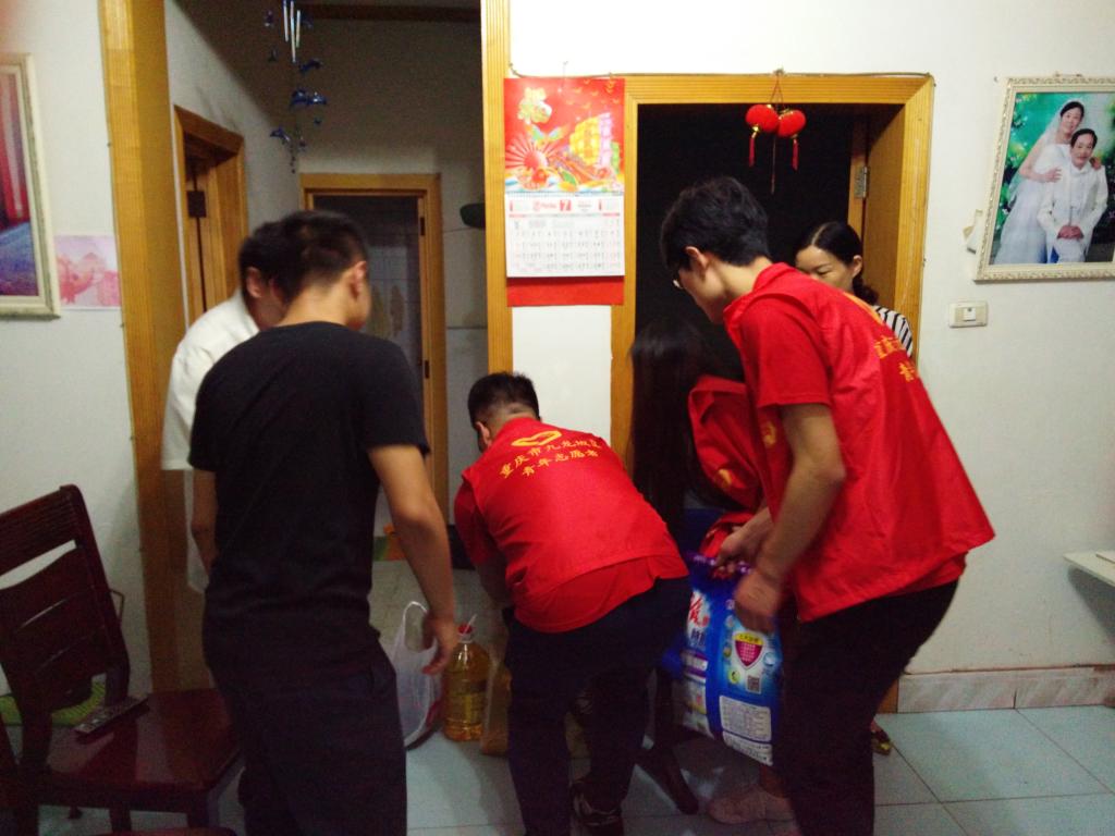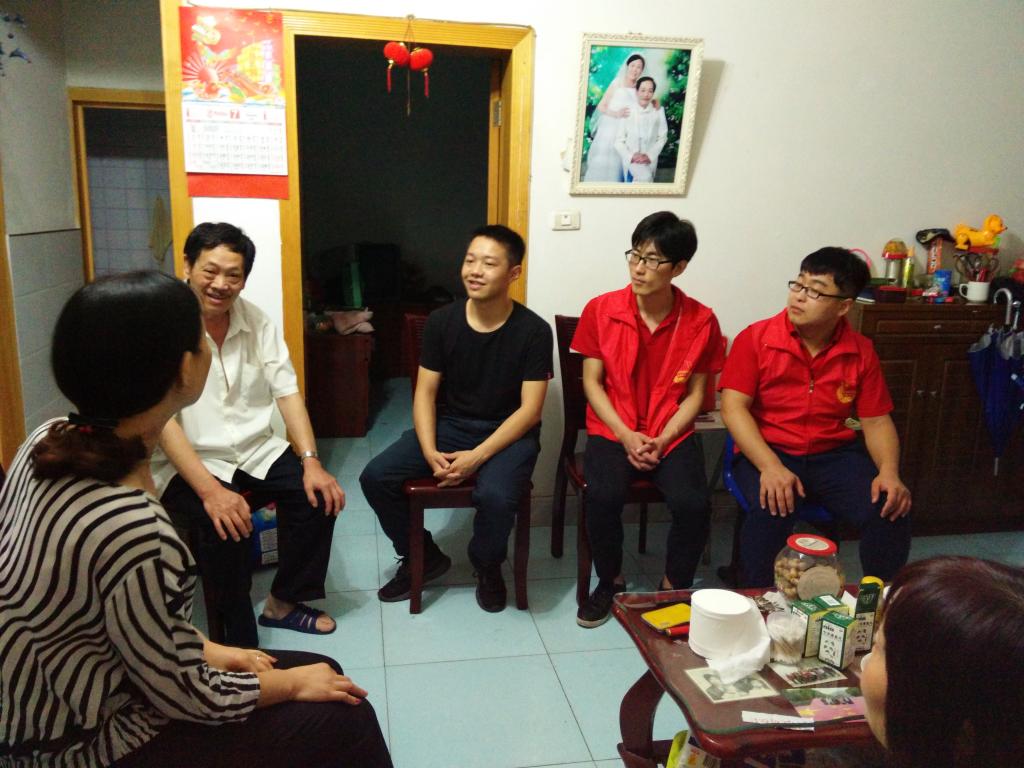本次走访的第二位老人是黄伯伯的家。黄金社区的李小琴书记和法学院分团委书记罗观老师一起对黄伯伯进行了慰问和关心。黄伯伯和9岁的外孙住在已经生活了15年的老房子里。“很久没有见到爸爸妈妈了很想他们,但是明天他们就要回来接我去玩了”。在聊天的过程中得知,黄伯伯的儿子常年在外打工,很少回家。黄伯伯也是一位老党员,今年已经60岁高寿了,正是儿孙满堂,安享晚年的年纪,却只能和外孙相依为命。志愿者们帮黄伯伯打扫卫生、整理房间,希望做一些力所能及的小事暂时缓解黄伯伯的思亲愁。