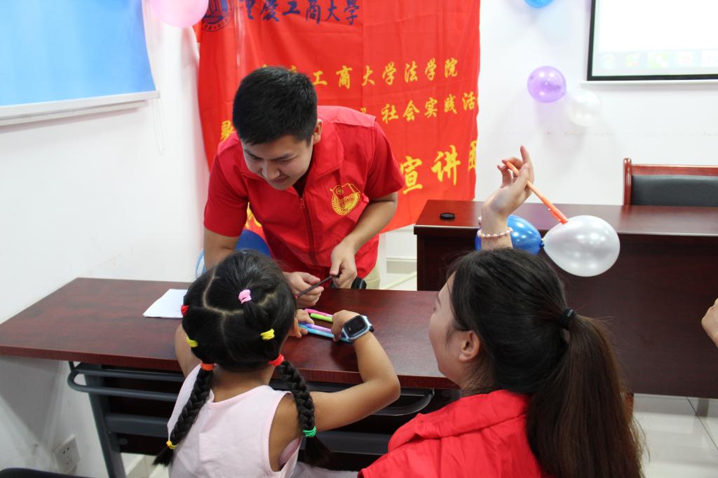 7月23日上午,太阳集团tyc234cc法学院2018年暑期“三下乡”社会实践依法治国宣讲团在九龙坡区石桥铺街道老顶坡社区开展了暑期嘉年华之“跟我学唱歌”。在悠扬的歌声当中,来自老顶坡社区的中小学生们和宣讲团成员们度过了愉快的课堂时光。